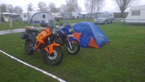 Apropos Tour: Die hat es uns natürlich komplett verregnet und es war zum erfrieren kalt :lol: Jo... wussten wir eigentlich vorab. Am ersten Tag haben wir von Feldkirch aus eine Schleife durch die Schweiz und ein Stück Deutschland gemacht, um ein paar Verwandte von mir zu besuchen, und dann nach fast 500 km am Bodensee gecampt. Als Resultat war alles nass und wir hatten nicht sonderlich viel geschlafen, so kalt war es uns trotz der Daunenschlafsäcke... Wussten wir an sich auch vorher, die Dummheit braucht kein Mitleid :lol: Wir waren aber farblich abgestimmt zu den Motorrädern nass, das war es eigentlich beinahe wert.