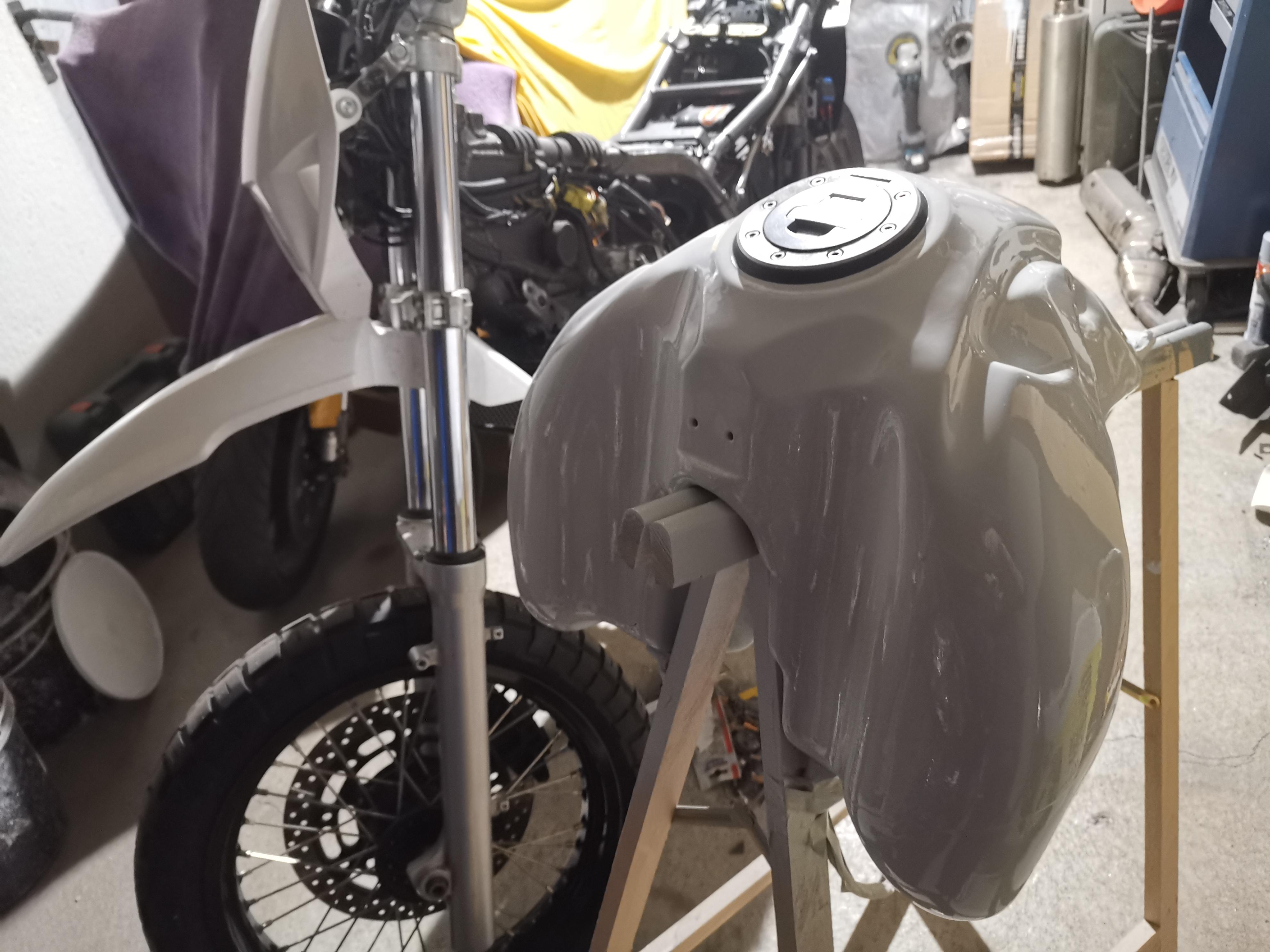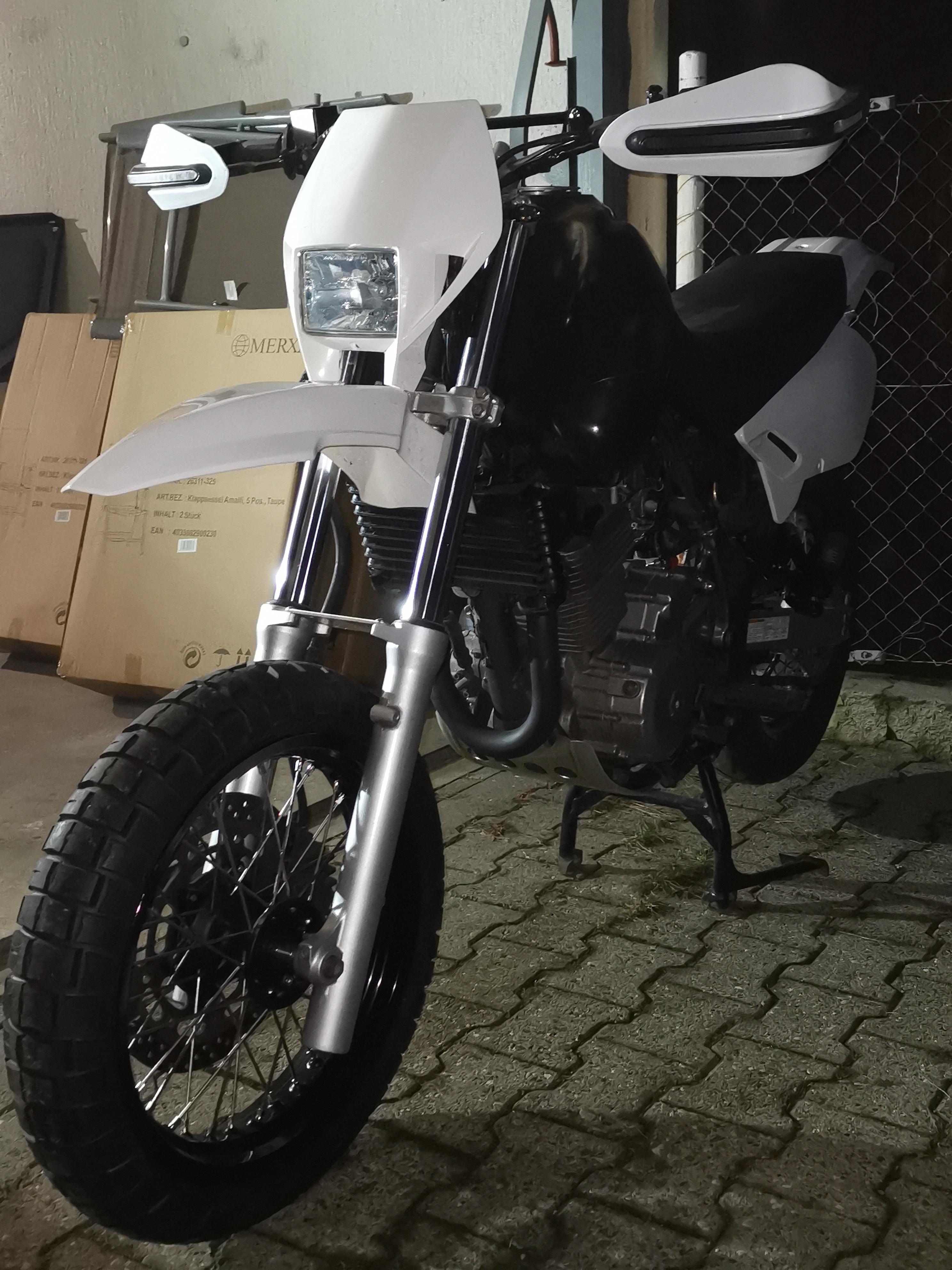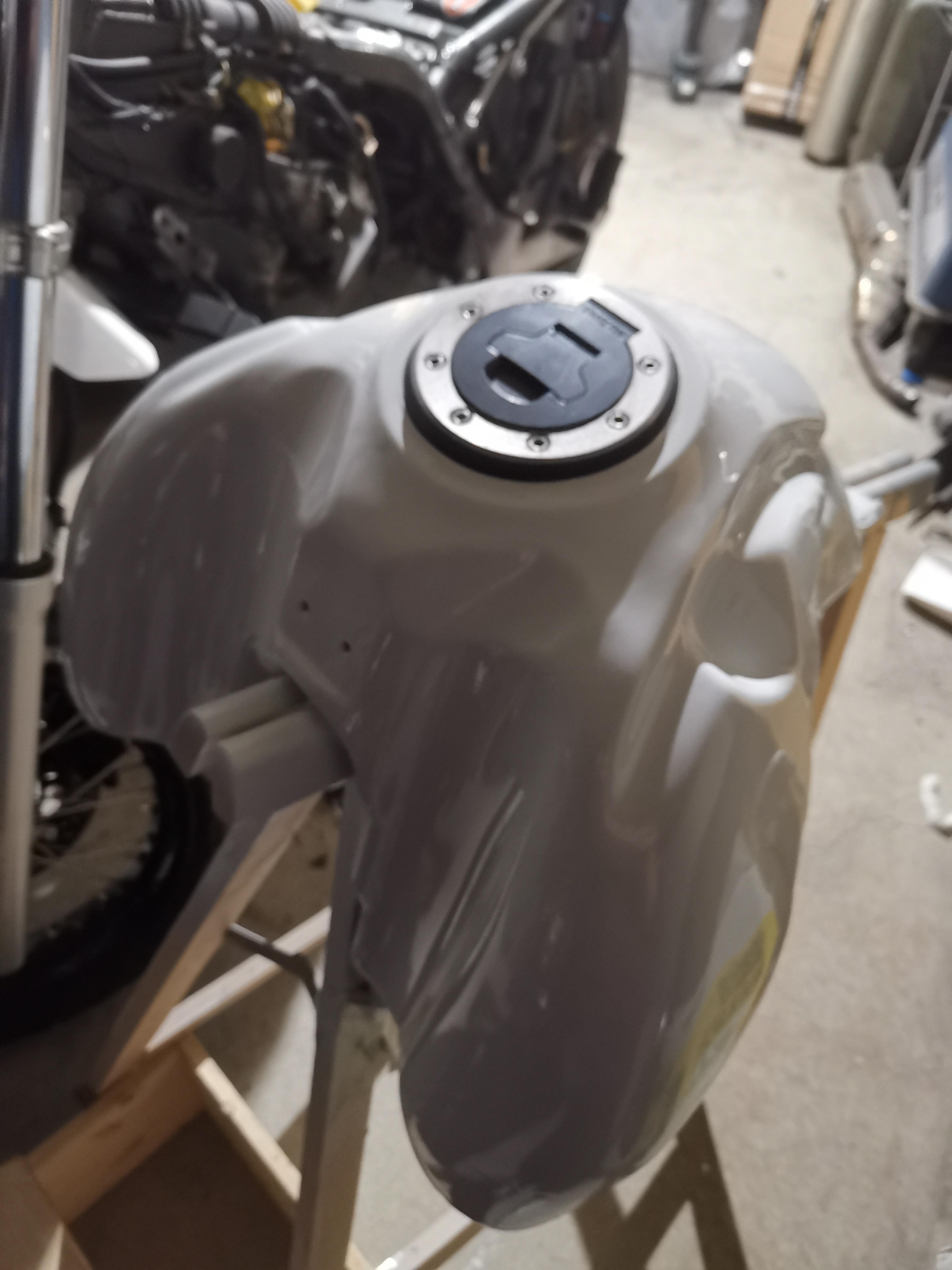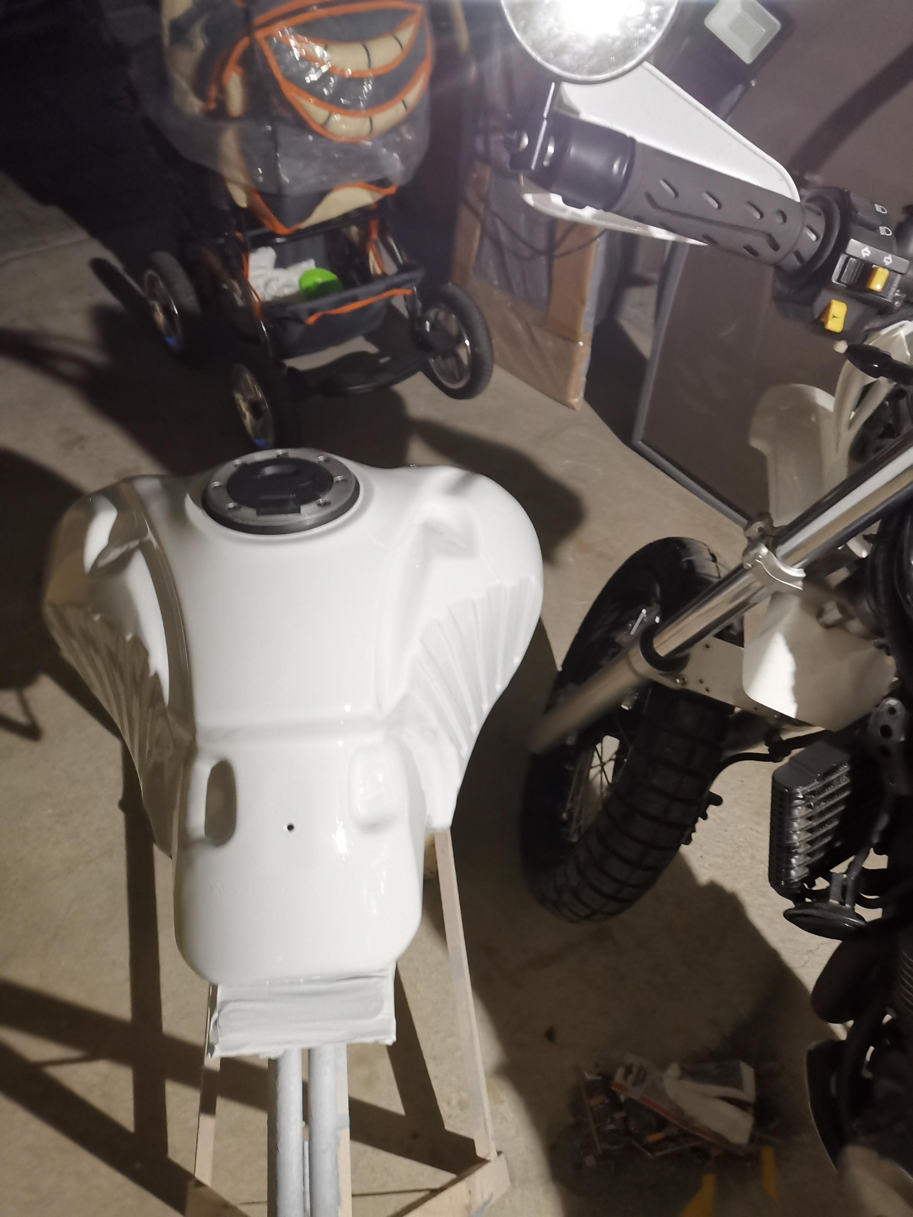 Bin gespannt ob du am Tank auch noch etwas Weisses montierst, damit dieser nicht so nackt/halbherzig ausschaut. Bei vielen Enduros/Crossern gibt es ja solche Verkleidubgateile, die etwas covern, Stürze minimal abfangen oder Luftleitfunktionen aufweisen.