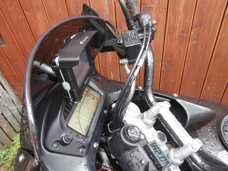 Ich war jetzt letzten Monat zwei mal bei motours daheim und konnte mir mal ein Bild machen von dem Navi und dessen Zubehör bzw. seiner Unterbringung des NavGears. Wir hatten uns über das motovlog.de - Forum kennengelernt. Er hat ein sehr großes Windschild von Givi, dahinter sitzt das NavGear wozu er sich eine passende Adapterplatte gebastelt hat, glaube ich kann man unter motours.de sich auch ansehen. Da ich Metallverarbeitungstechnisch nicht gut ausgerüstet bin und meine Ideen alle entweder instabil waren oder dämlich ausgesehen hätten habe ich mich für den Weg durch die Scheibe entschlossen.