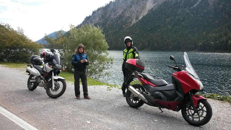 kurz vor dem plansee riß endlich die wolkendecke auf, sodaß wir die slalomstrecke an seinen ufern auf trockenem asphalt geniesen konnten.