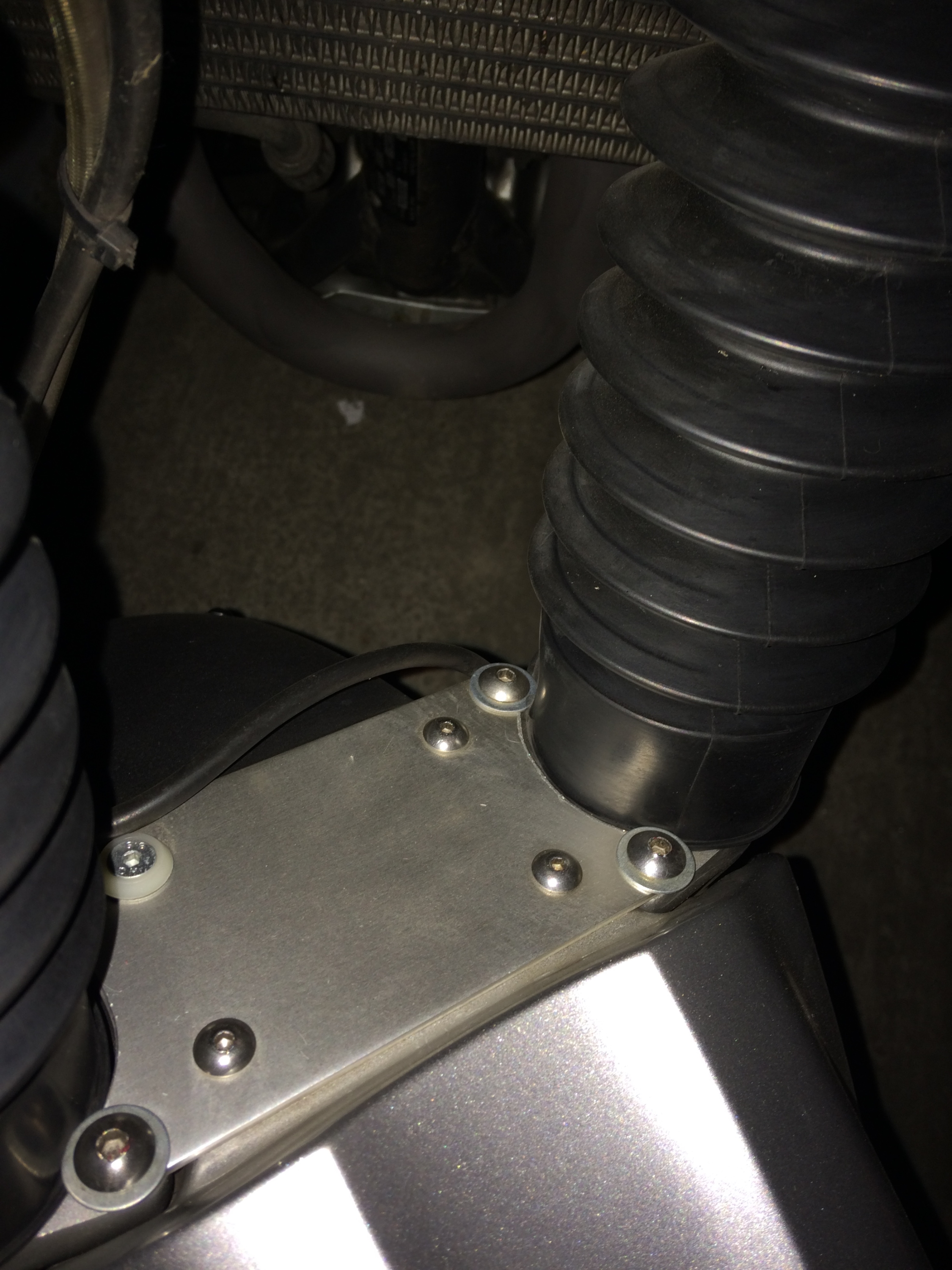 Oder man löst die 4 Schrauben der U-Scheiben und kann den Balg dann ganz easy hochschieben zur Kontrolle. :wink: