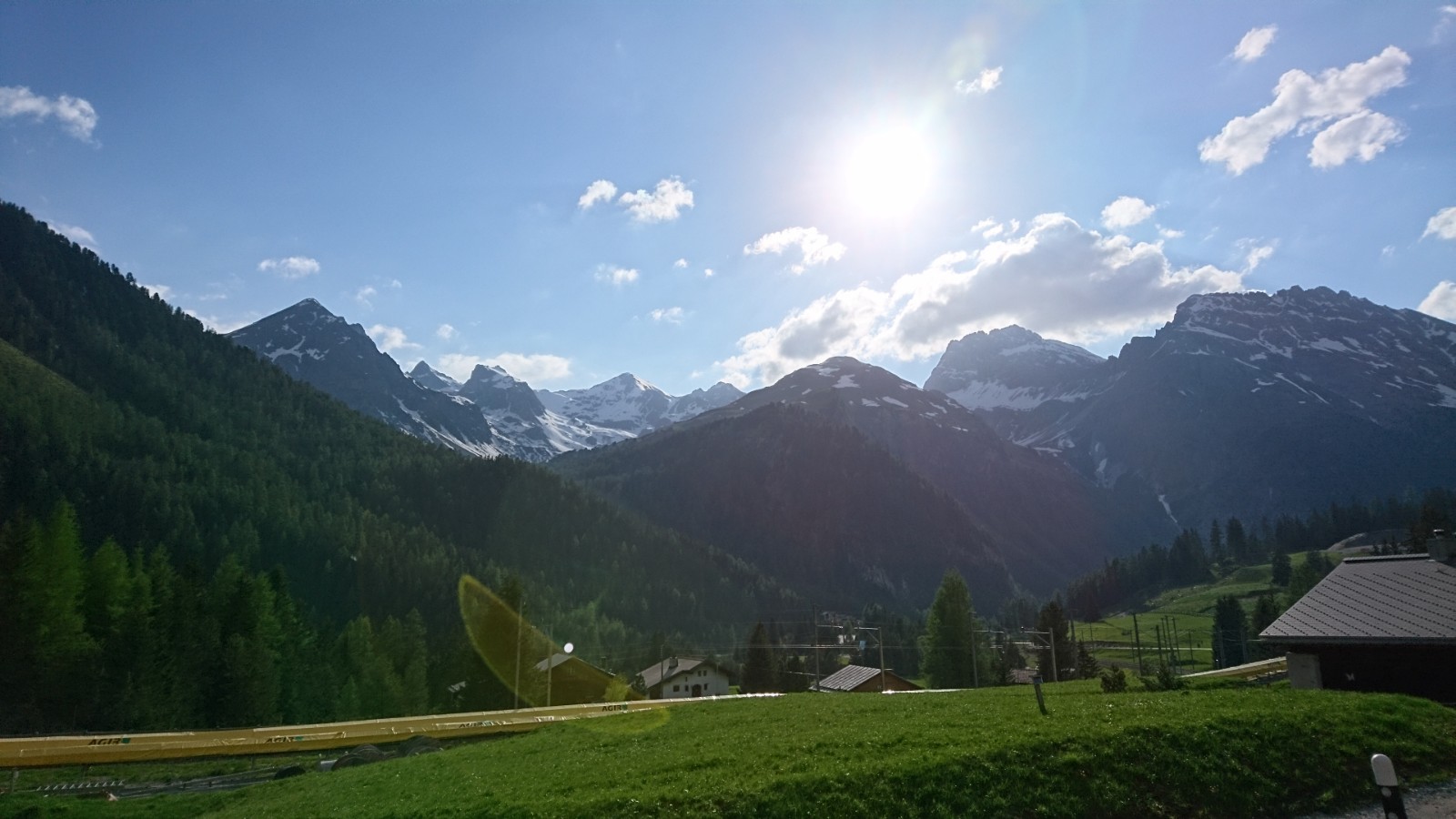 Da der Albulapass noch wegen Baumaßnahmen geschlossen ist, wählen wir den Julierpass bis Tiefencastel in der Schweiz. Hier stelle ich mein Zelt zunächst zuverlässig auf einen Ameisenbau, bis ich doch umziehe. So viel Gesellschaft verträgt meine Privatsphäre nicht.