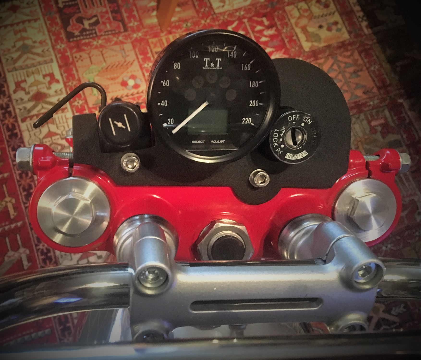 Gabelholme sind fertig, mit Wilbers Federn und auf mein Gewicht eingestellt. Armaturen sind dran, Lenker ist dran, Lampe ist dran, Gabelstabi ist dran, Kotflügelvorne ist dran, Blinker vorne und hinten sind dran.