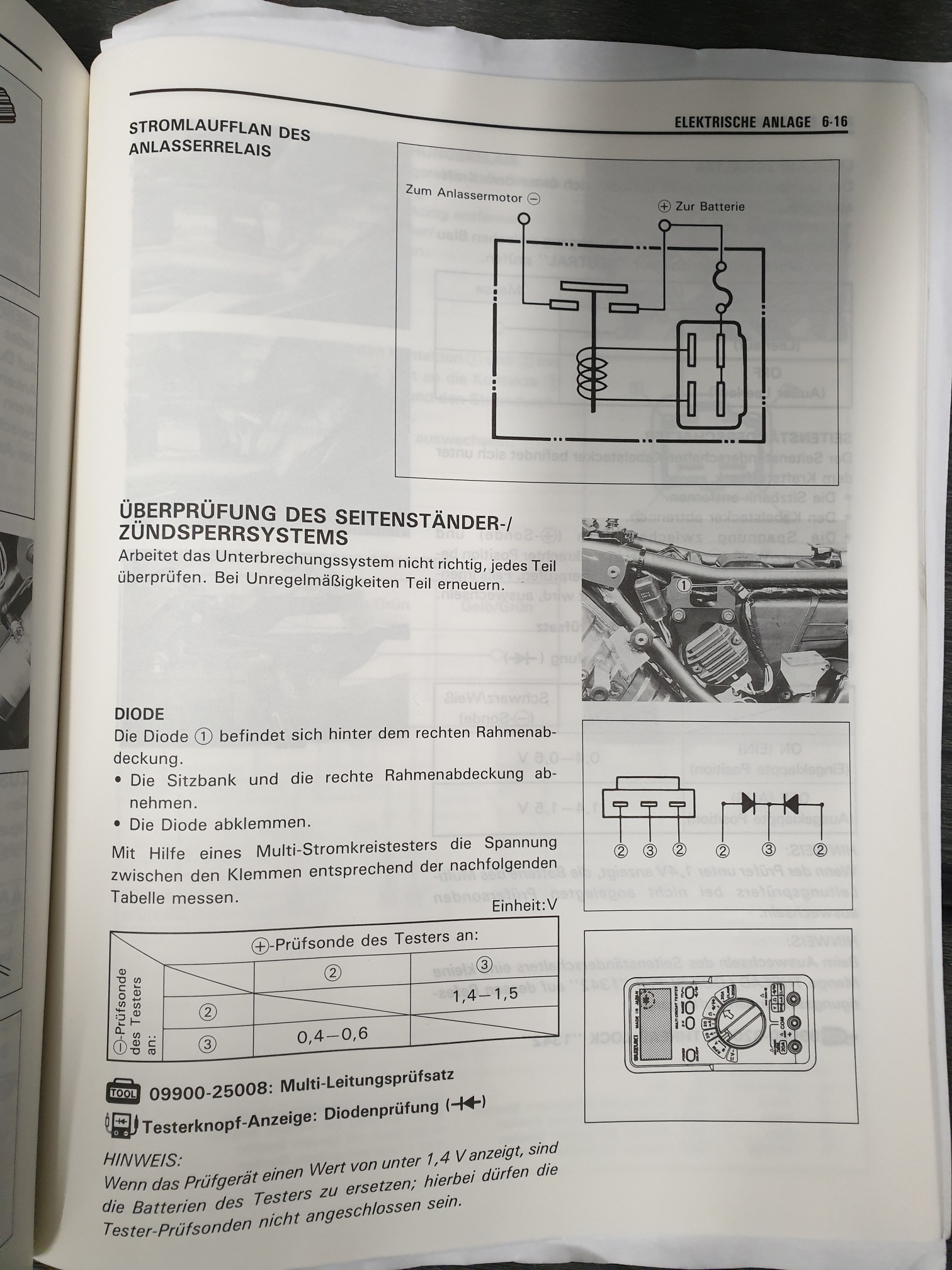 Die Dioden gibts nur einmal im Kabelbaum, soweit ich weiß. Den "Diodentest" kann auch nicht jedes DigitaleMultiMeter.