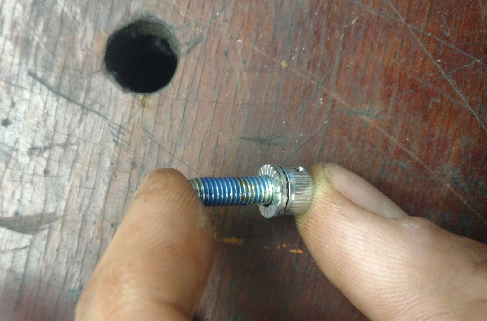 Ich hatte mir schon Schrauben vorbereitet, damit ich die Sicherungsdraht (Ich habe Edelstahl-Schweißdraht benutzt) zur Sicherung verwenden kann.