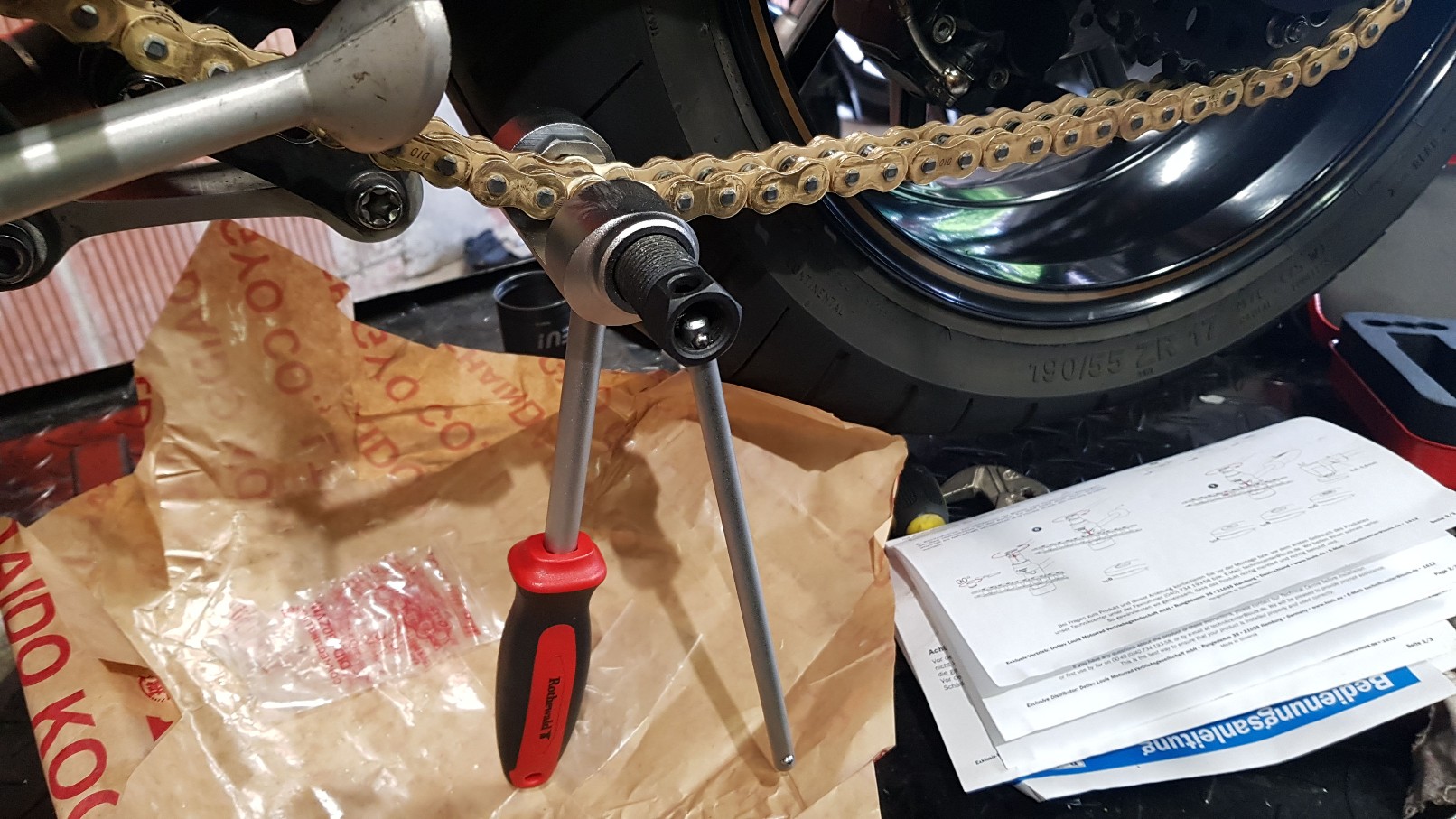 So ein Schwingenausbau ist je nach Motorrad nicht immer einfach. Bei meiner Speedy geht das erst gar nicht, da die Kette mitten durch die Schwinge läuft.
