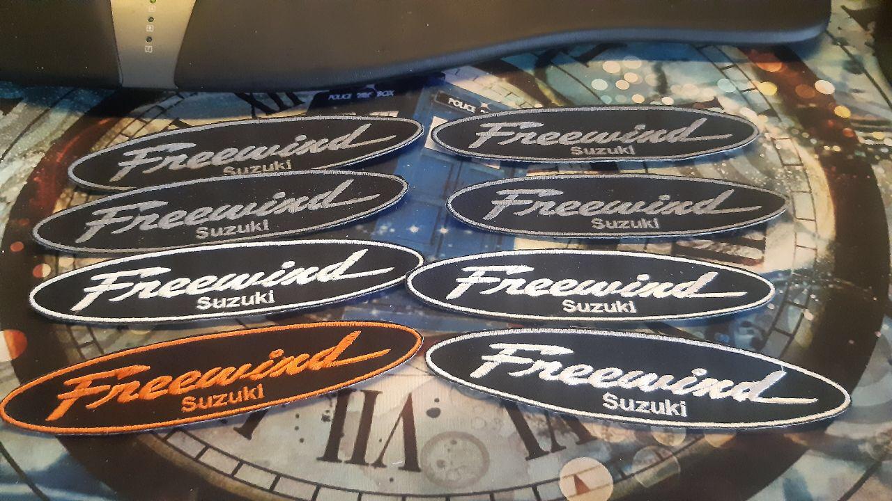 Besteht hier Interesse an Freewind-Logo-Patches wie auf dem Bild zu sehen? Schwarzer Hintergrund, Stickfarbe wählbar (normales Garn in allen möglichen Farben oder auch reflektierendes Garn machbar), Größe ca. 150x32mm.