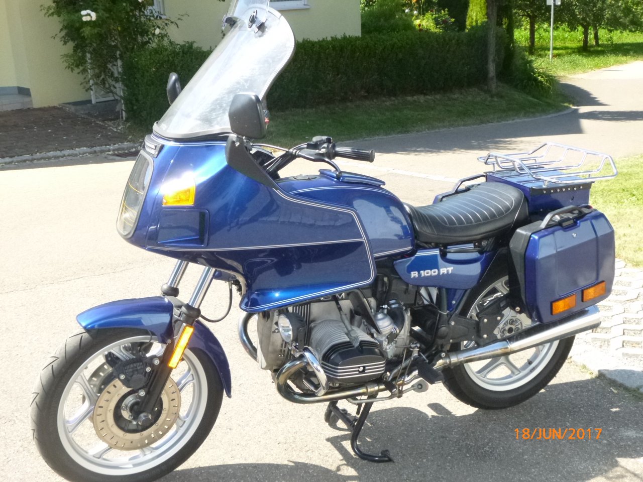 Eine schöne Farbgebung und der Zustand, soweit man ihn auf den Bildern erkennen kann, scheint sehr gut zu sein. In Schotterwege kann man allerdings auch mit einer BMW einbiegen, obwohl die RT Verkleidung dafür besser demontiert und in einem Keller gelagert wird.