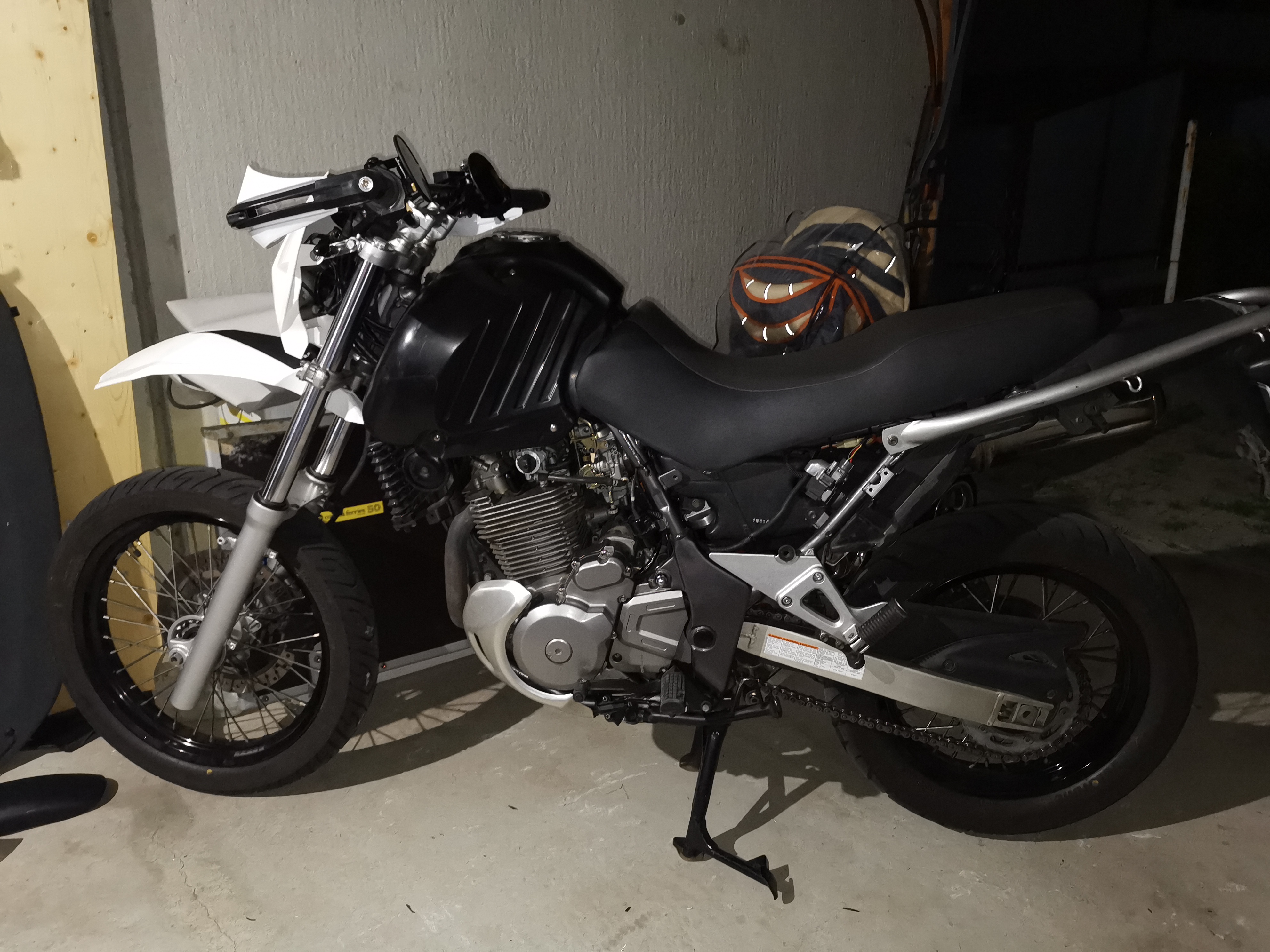 Cool Salach rules, ja die 600er 750er Töpfe sind da leiser, leider auch schwerer, der Seffan Hessler baut halt nur so tracker Style Dinger mit der XF, ich wollt halt ne DR aber deutlich zu teuer, deshalb bastel ich bissel auf Dr optik um