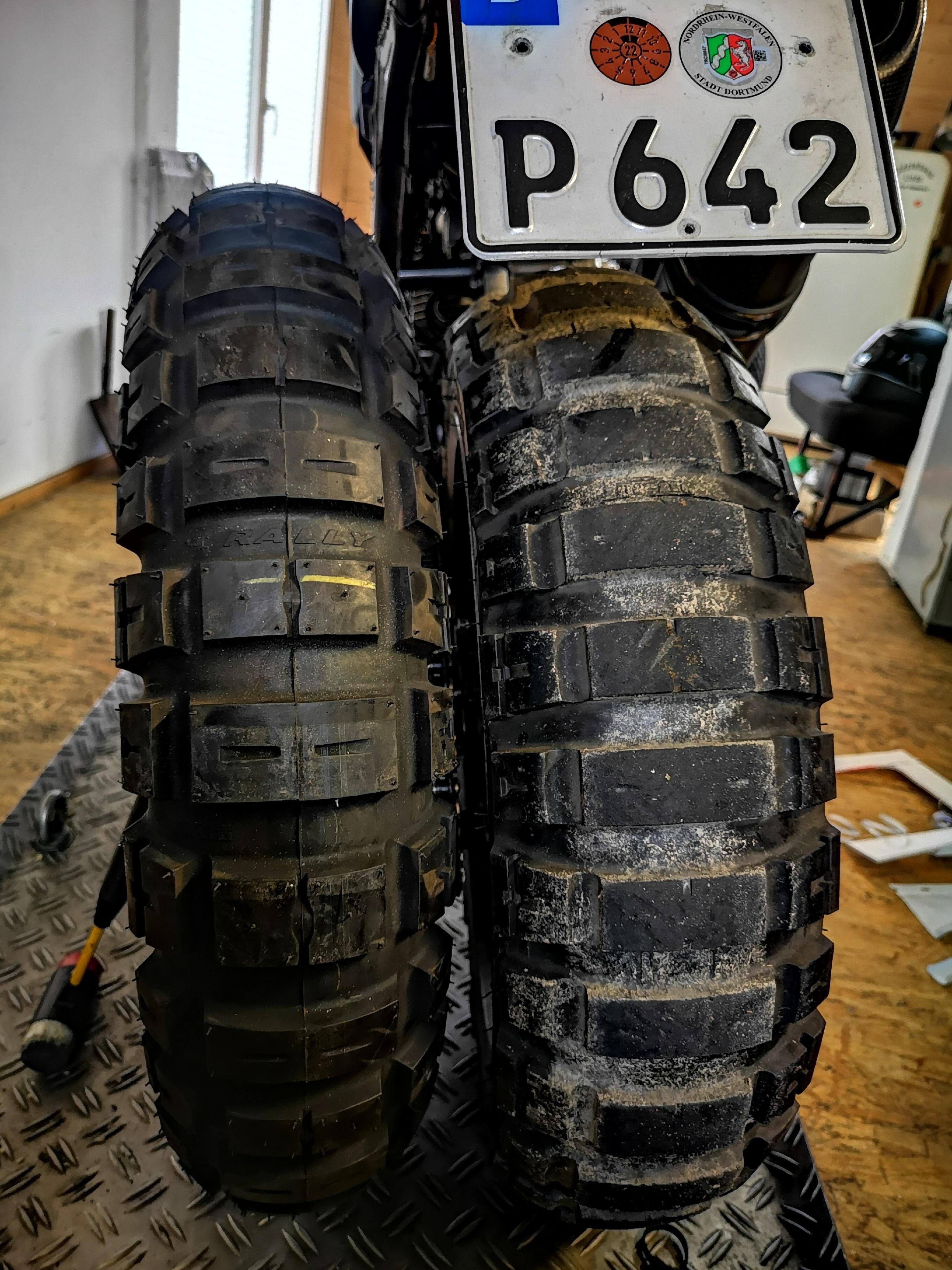 Und es ging sehr gut zu montieren mit der 3" ich muss auch sagen das der Reifen nicht viel anders an den Flanken aussieht wie bei meiner VTR 1000 mit 3,5" und 120/70 er, er sagte die Traglast und Geschwindigkeitscode ist viel wichtiger als die 12,5mm