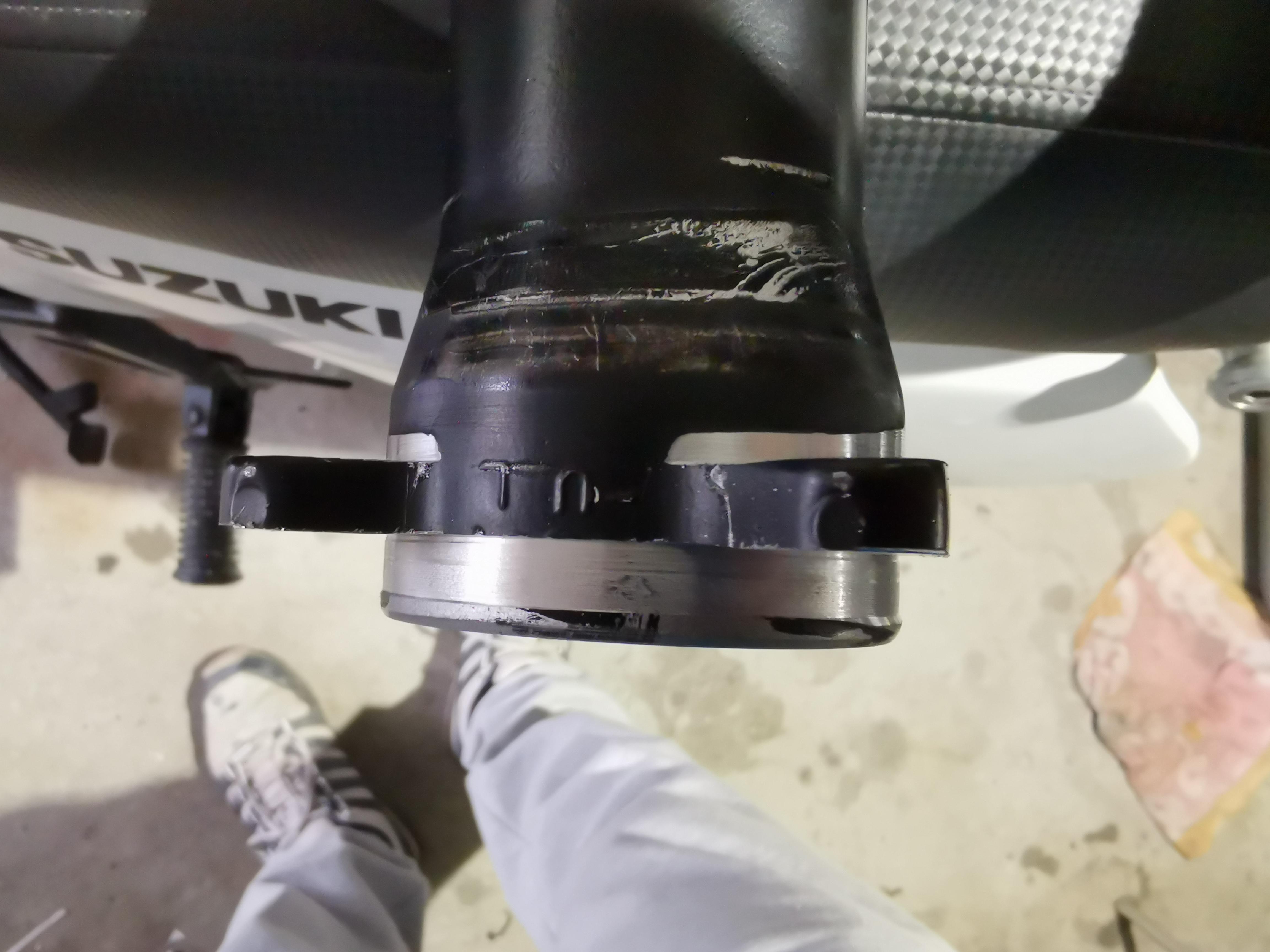 Heute mal bisschen Gabel gedreht, M14 DR Big Schraube passt jetz unten rein, und für die Faltenbälge gibt's jetzt ne schöne Haltenut, dafür muss der Stabilisator jetzt von unten geschraubt werden, wird geil denk ich