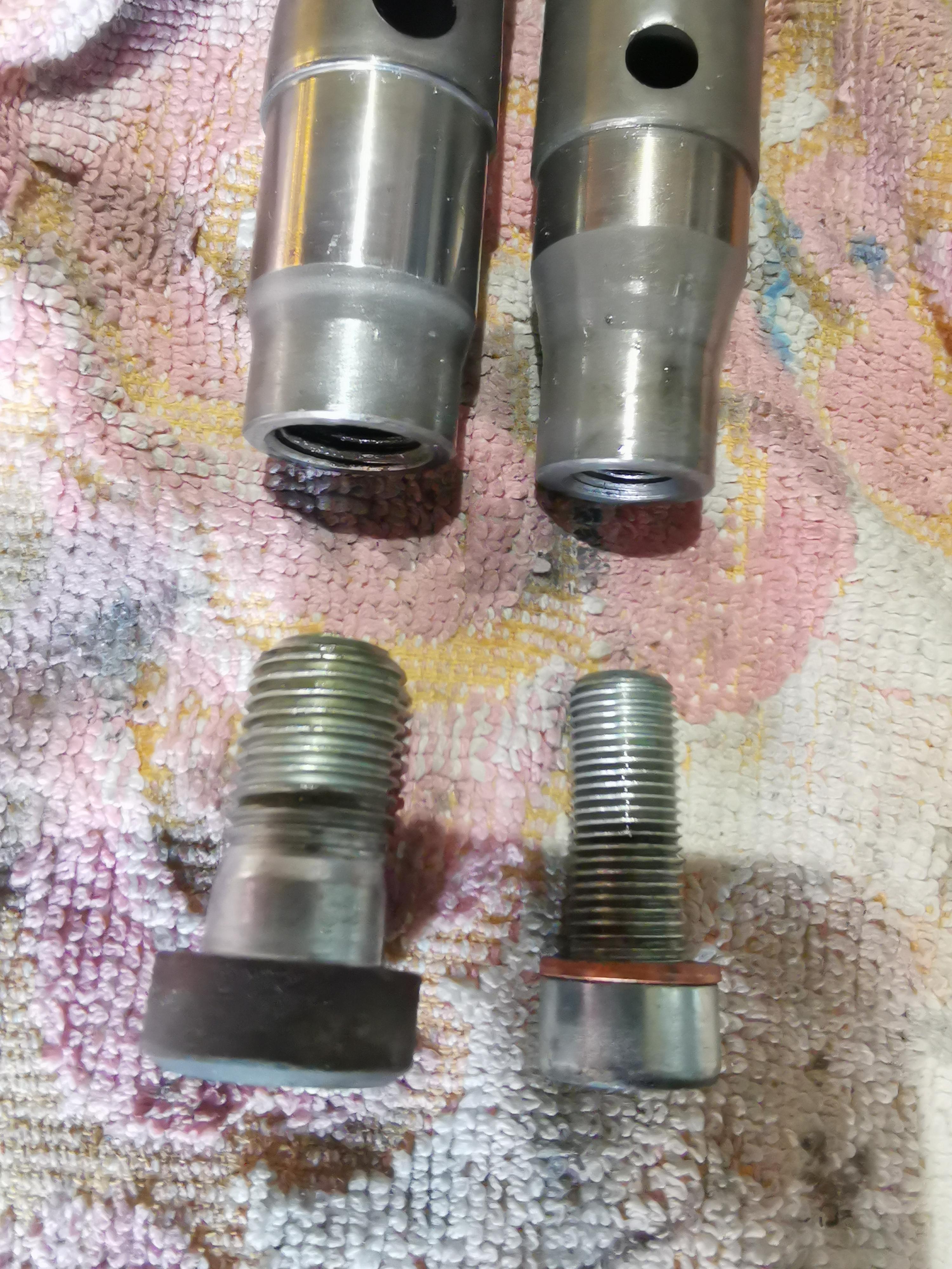 Doch das geht auch, nur ist das Dämpfungsstück unten einsatzgegärtet, wo es in die Plastikhülsen kommt, und das dann wieder grade zusammenzuschweißen könnte schwierig werden, und die Härte ist dann eventuell nicht mehr vorhanden, oder ein passendes Drehteil und ne längere Schraube,