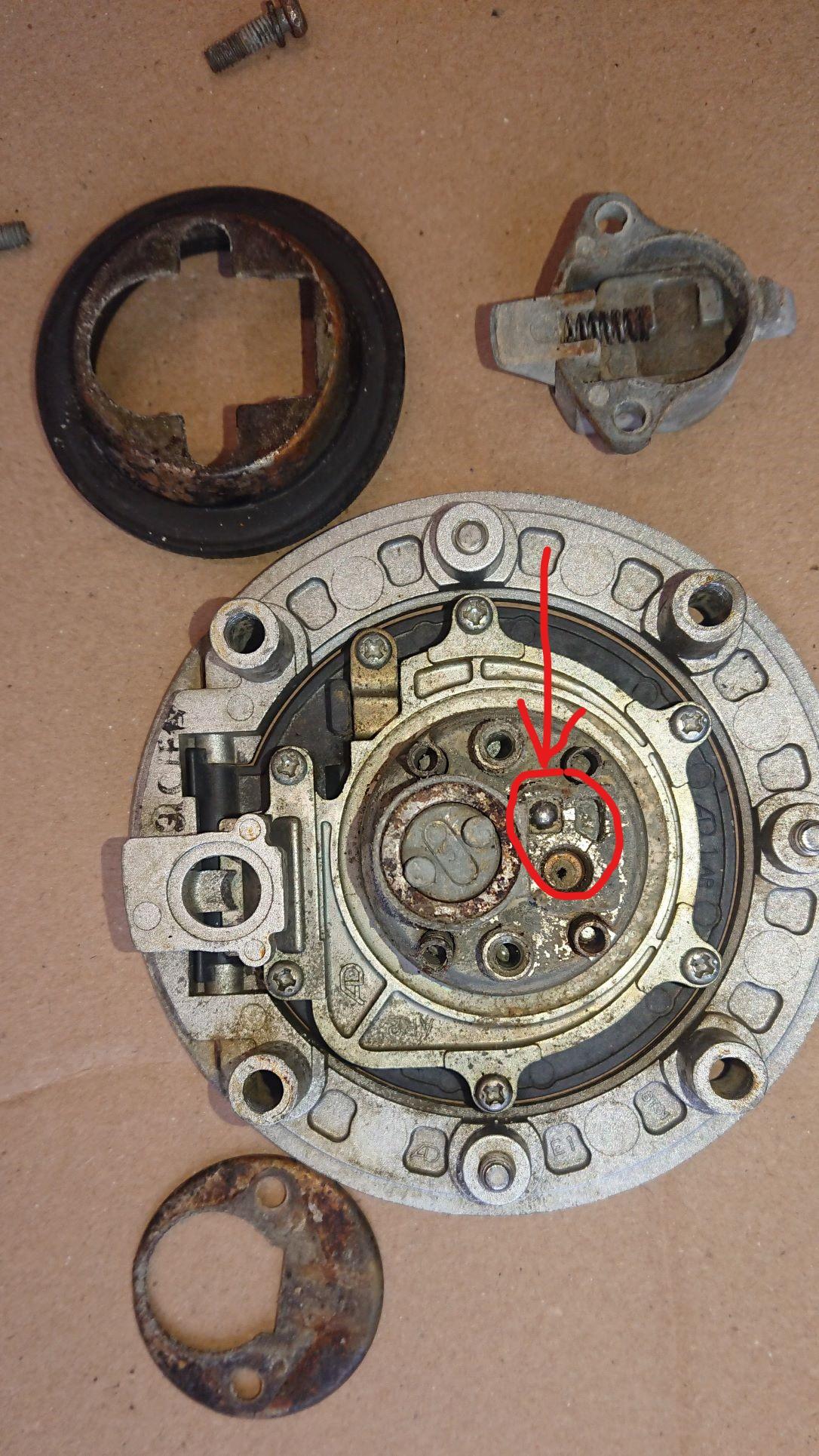 So Leute, habe heute mal dem Tankdeckel sein Geheimnis entlockt. Hab ihn ausgebaut und mal zerlegt und siehe da nach dem Sperriegel und einem Abdeckring kommt eine kleine Kugel zum Vorschein von der 2 Luftkanäle in Richtung Sperriegel führen. Die kleine Kugel war fest durch Alukorrosion und hat demnach den Lufteinlass dicht gemacht. Nach erfolgreicher Behandlung mit etwas Rostlöser ist sie nun wieder leichtgängig und man kann sie auf und abbewegen sodaß sie die Luftzufuhr freigibt. Also ist es somit bewiesen das die Tankbelüftung über das Tankschloß geführt wird.