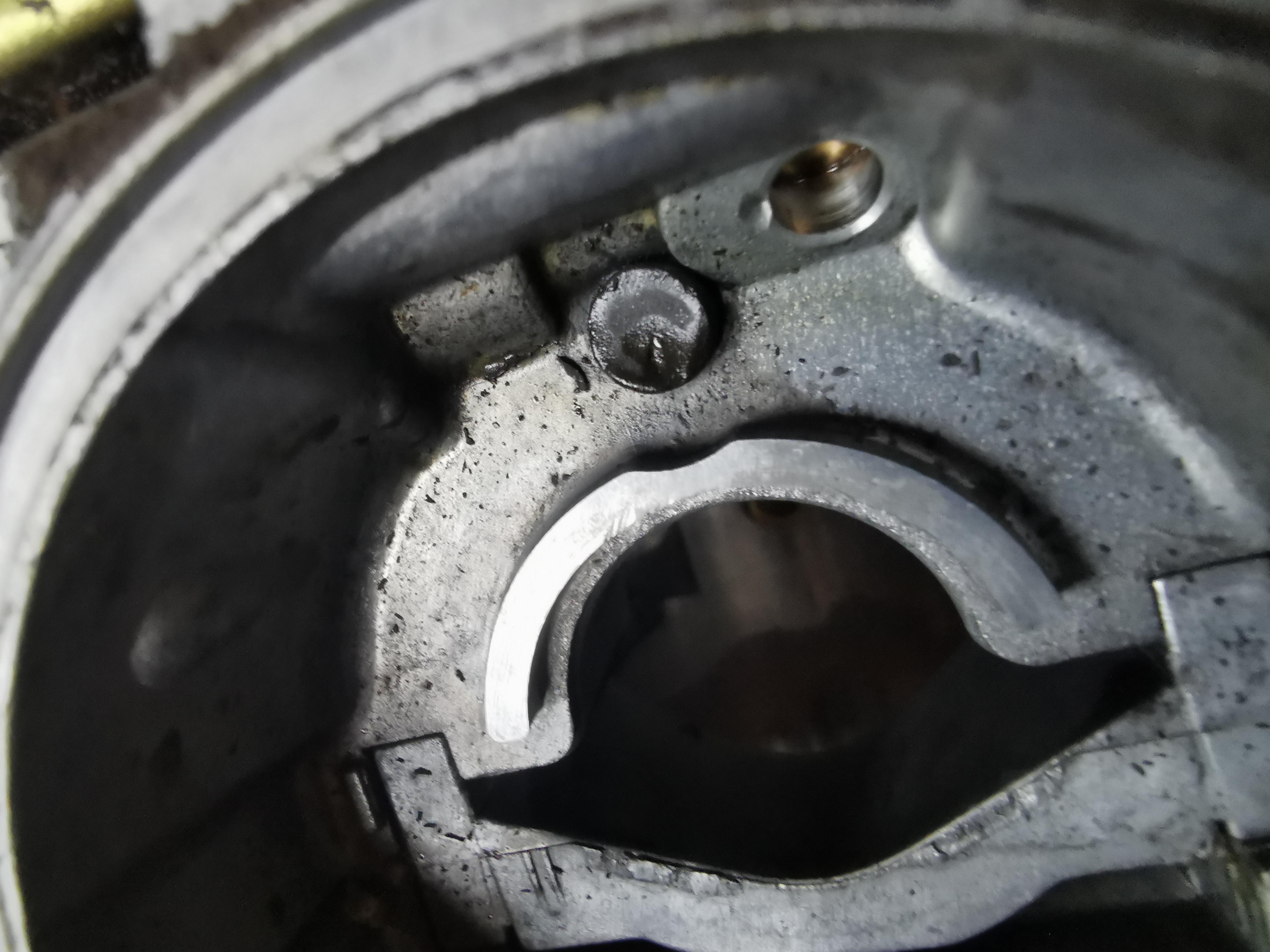 Abgesehen von der Verschmutzung fand ich in einem Deckel klebend eine U- Scheibe, die ich nicht zuordnen kann. Am Boden der Kammer ein runder Klumpen.
