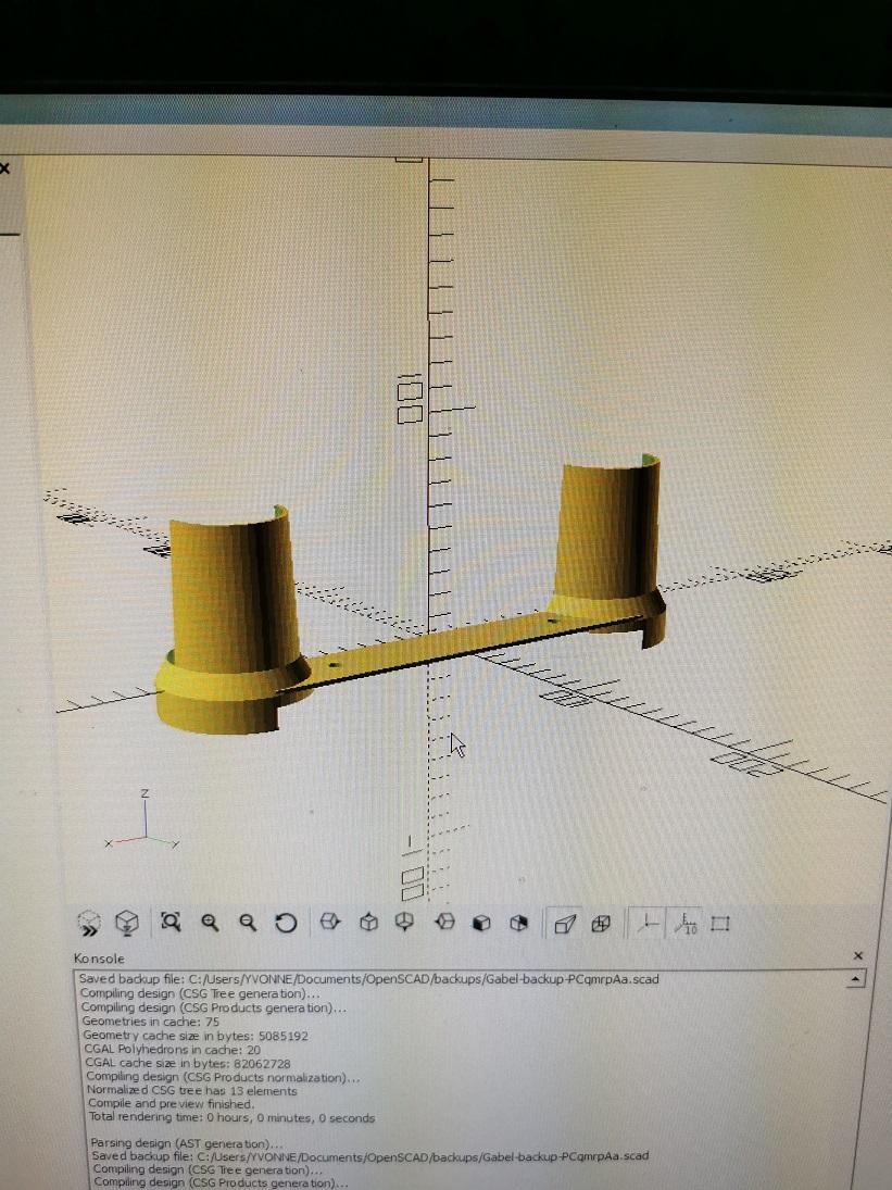 Die Bilder zeigen mal einen groben Entwurf, eine Paßprobe, ob man das Ding über die Gabel bekommt und eben die Schrauben