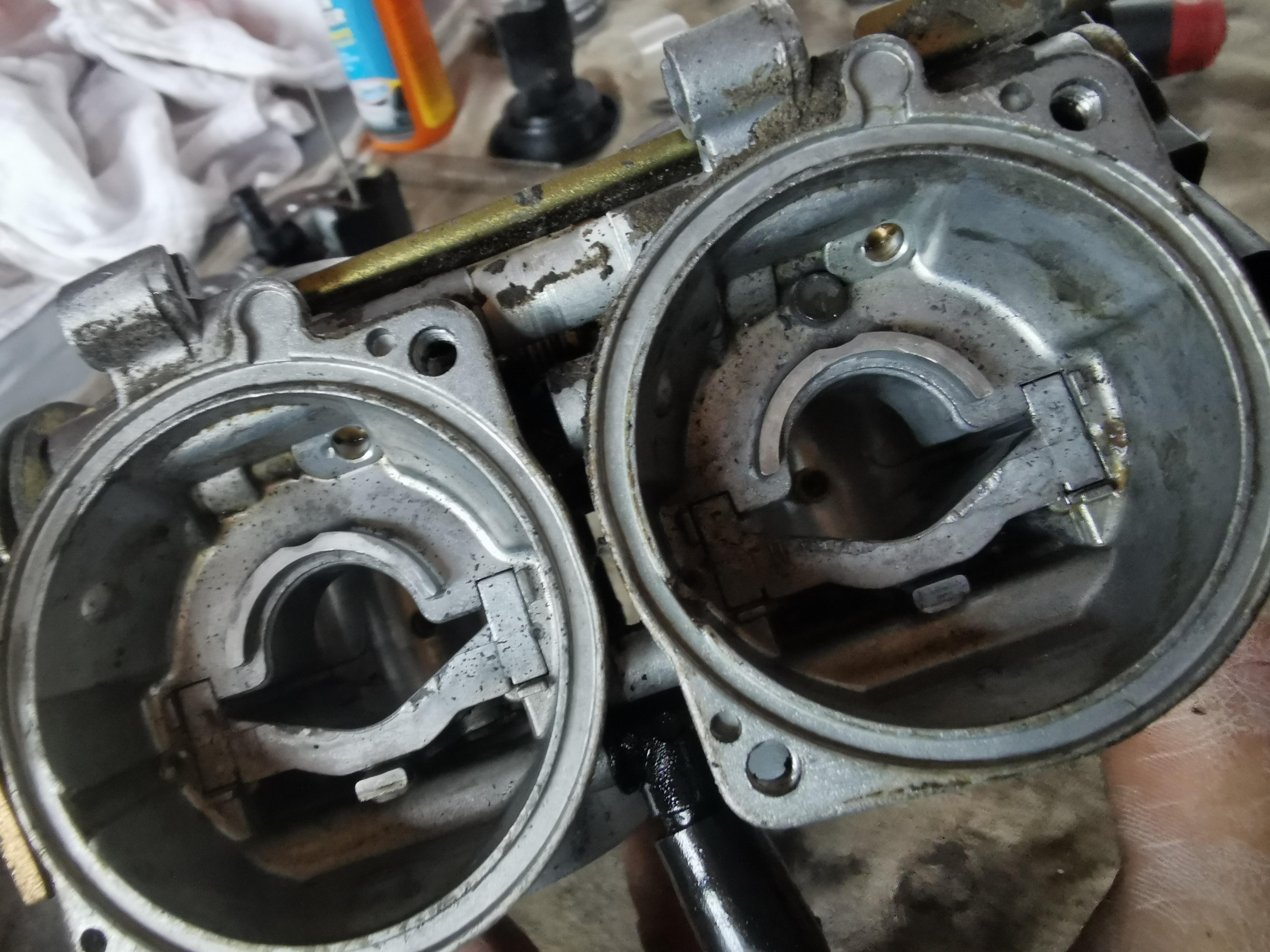 wegen der Ruckelei bei wenig Teillast habe ich nun heute auch meine Vergaser zerlegt. Bisher nur oben die Unterdruckkammern, dann hat es mir gereicht.
