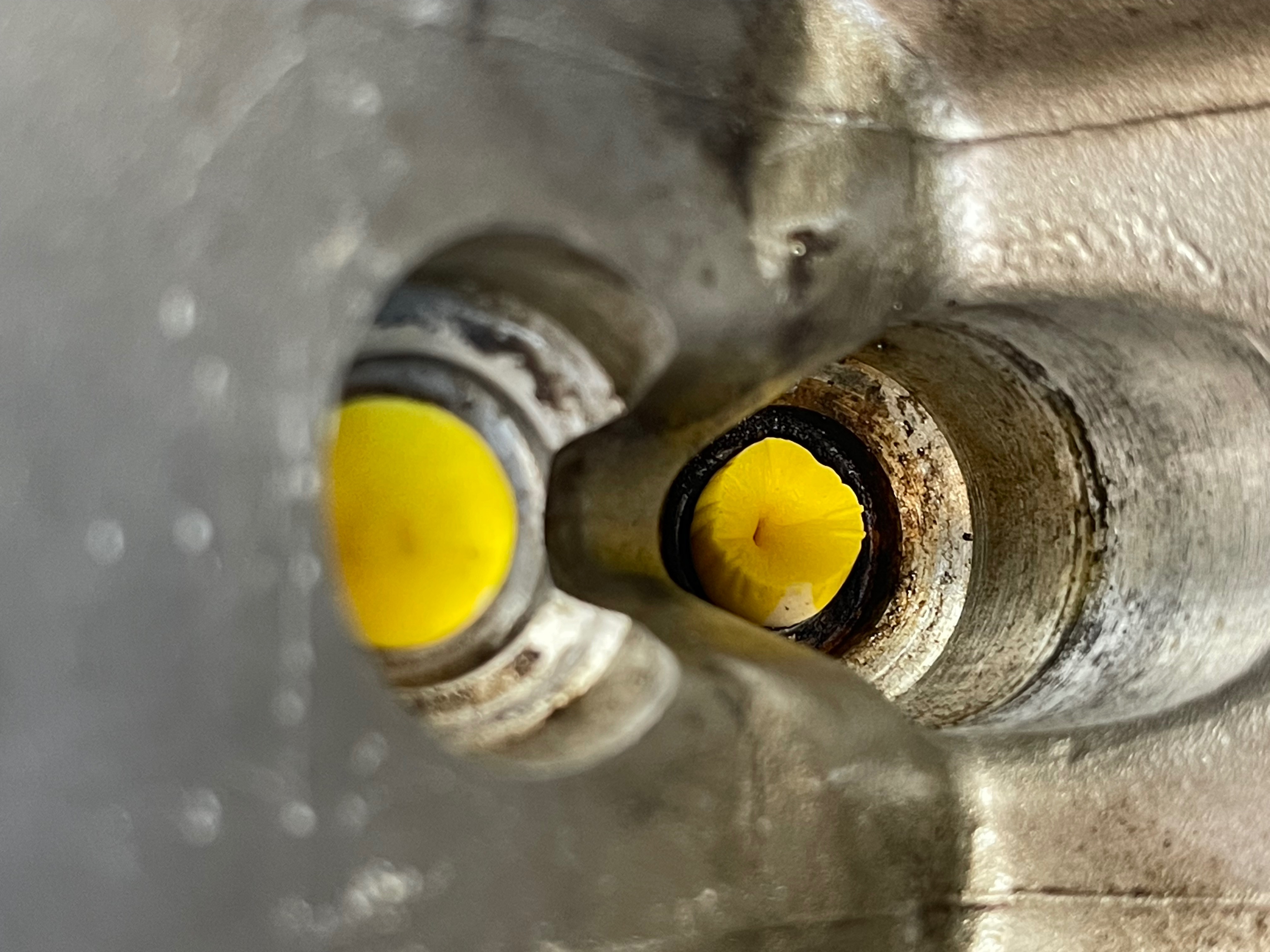 Jetzt habe ich ebenfalls durch euch erfahren, dass es daran liegen kann, das der Motor Falschluft zieht. Darauf hin habe ich mir den Vergaser näher angeschaut und entdeckt, dass die Ansaugstutzen ausschauen, als wenn die jemand mit schwarzer Farbe oder Silikon überpinselt hätte.