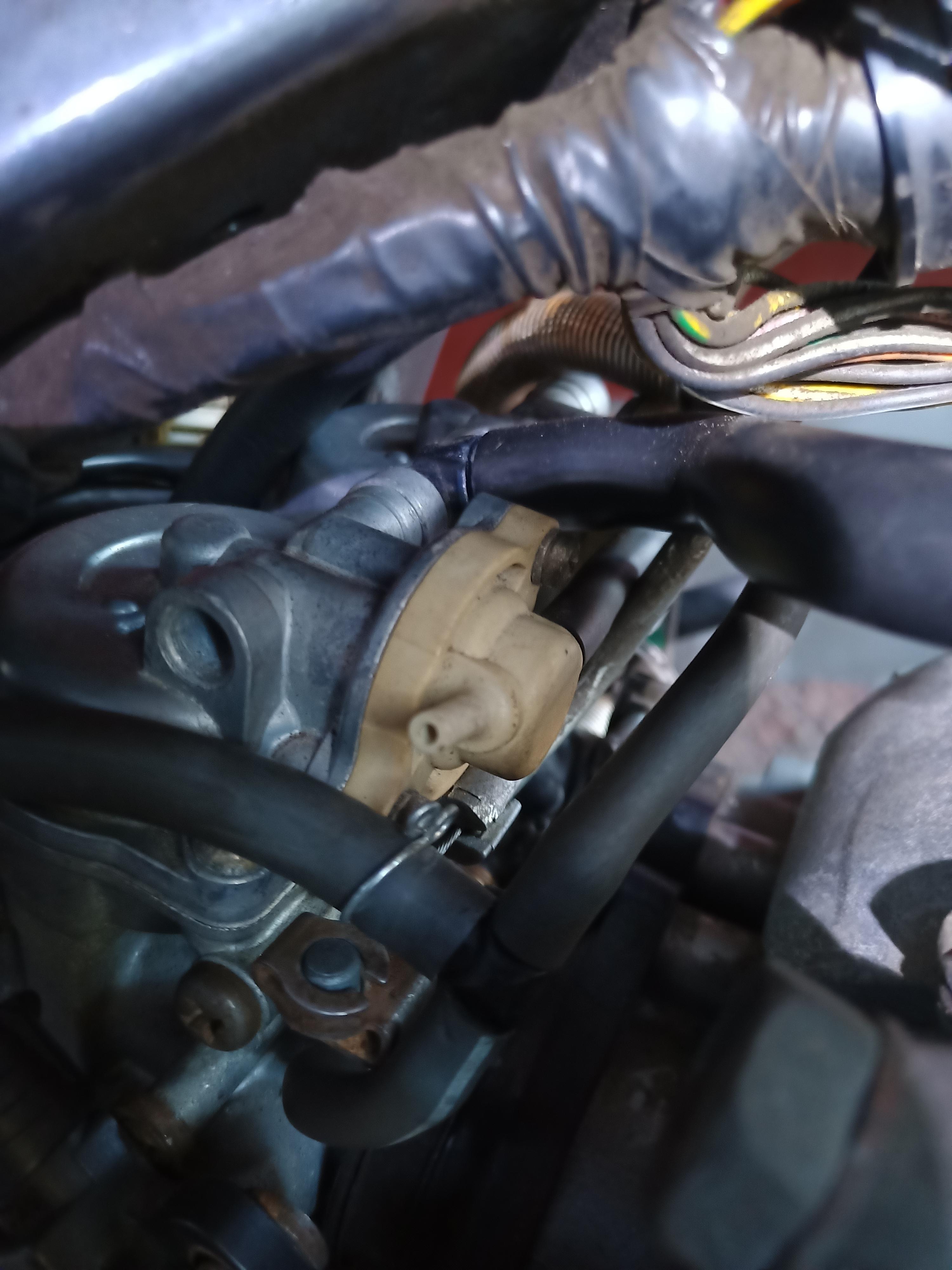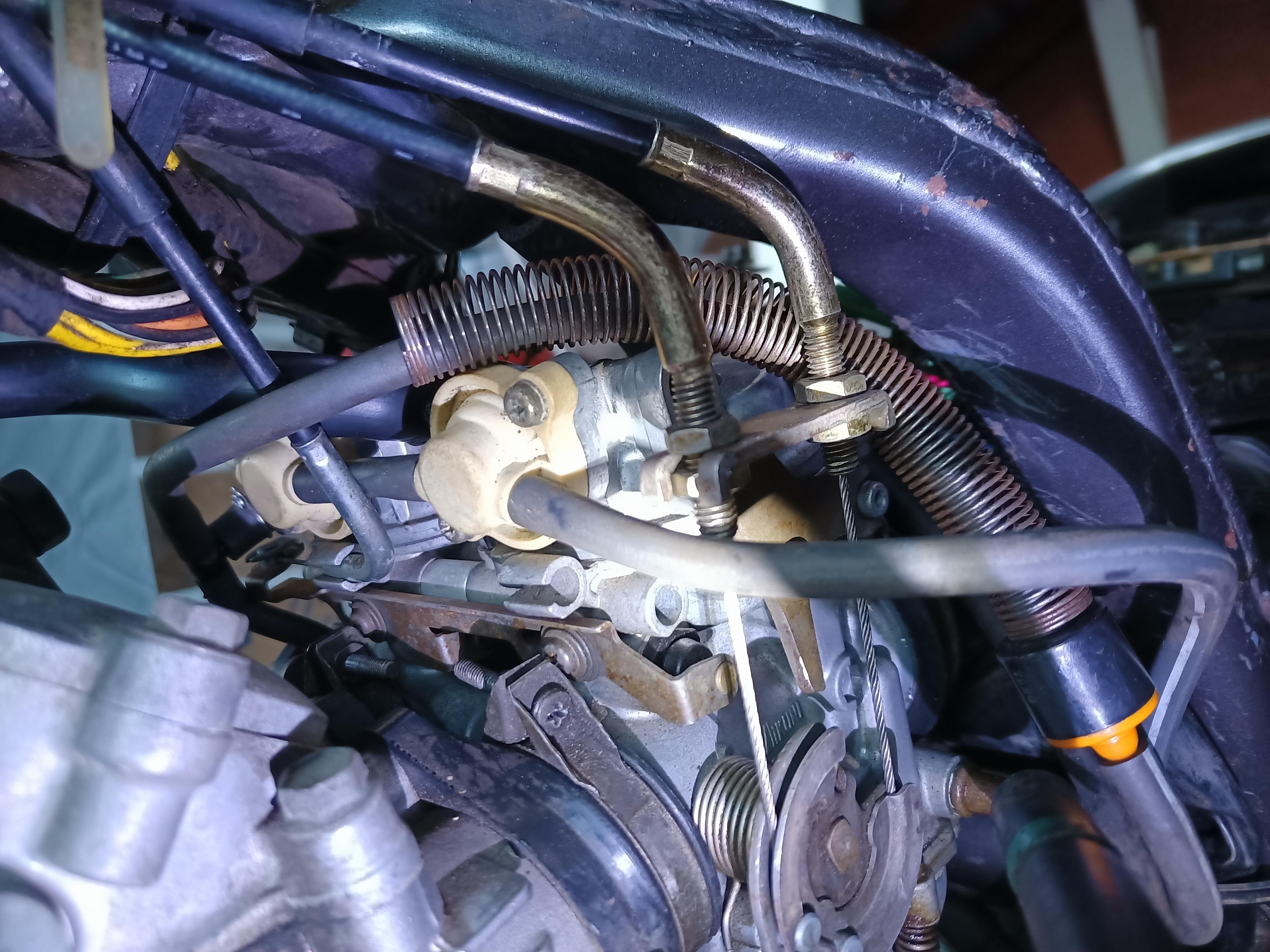 Ich habe mir heute einmal den Vergaser von aussen angesehen, und mir ist aufgefallen, dass das in Fahrichtung gesehen rechte Hubsteuerventil nach aussen hin auf dem Stutzen nichts hat, also keinen Schlauch, oder auch keine Verschlusskappe.