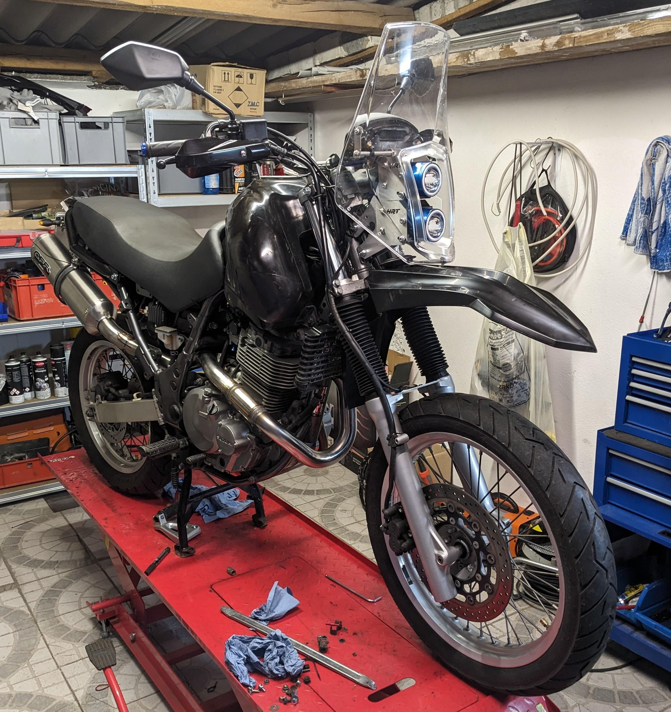 Der Rallye-Tower polarisiert, aber er hat auch zu der ungewöhnlichen Optik noch etwas Windschutz - aber wenn der mir nicht mehr gefällt hab ich ja noch die Enduro Lampenmaske
