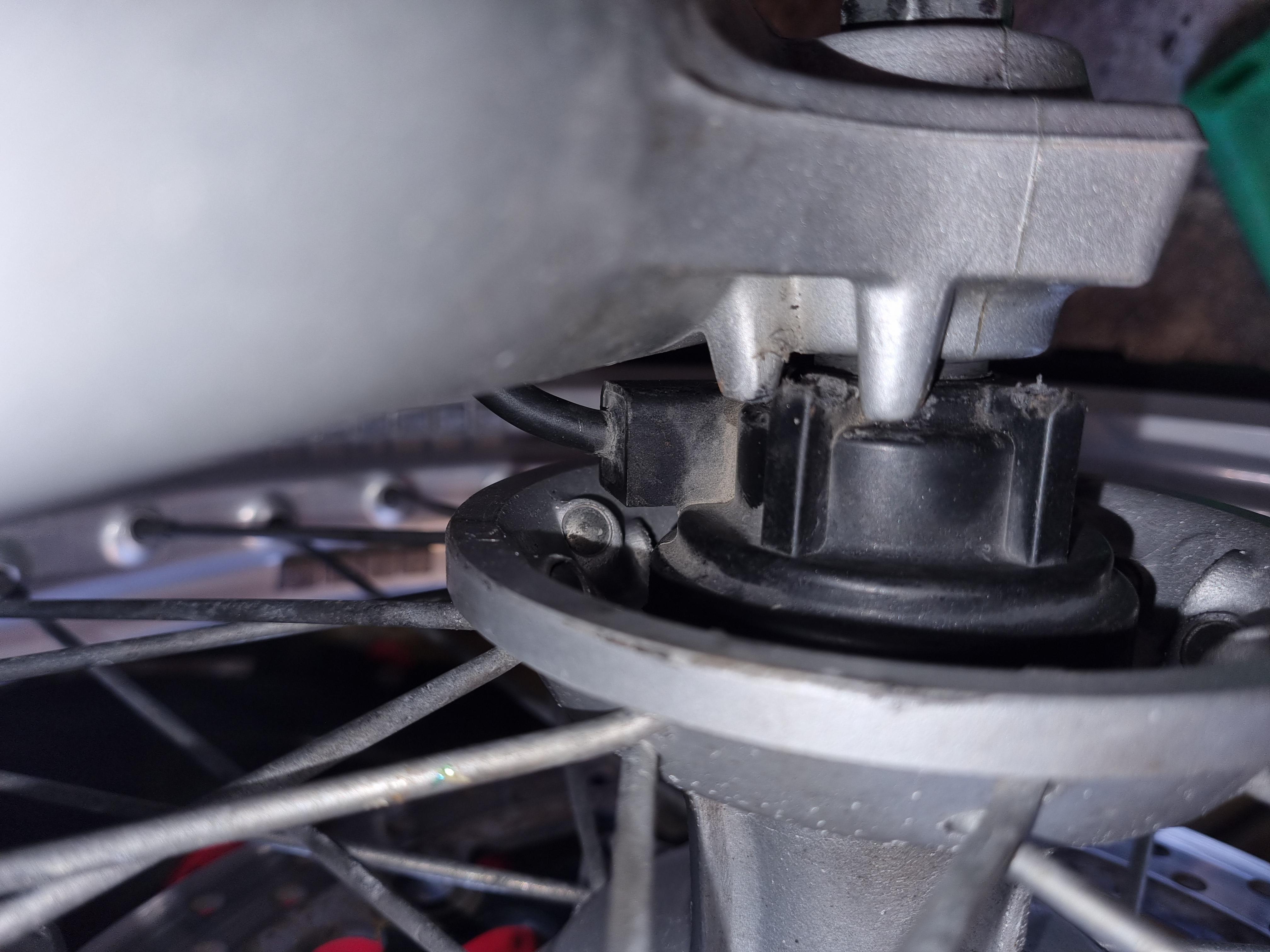 nein, ist nicht korrekt, wurde ja oben schon beschrieben, Tachogeber muss leicht gegen den Uhrzeigersinn gedreht werden, damit die rechte der Kunststoffnasen zwischen den Metallnasen steht und das Kabel nach oben weggeht.