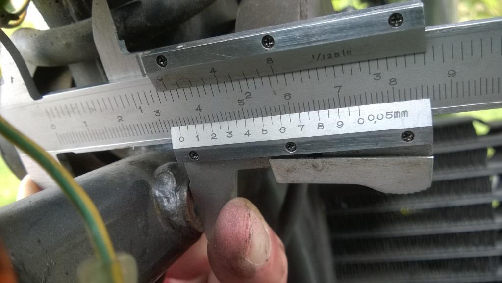 Da ich gestern den Tank runter nehmen musste (der Benzinhahn war undicht), habe ich mal der Versatz Rahmen/Ventildeckel nachgemessen. Hier das Resultat