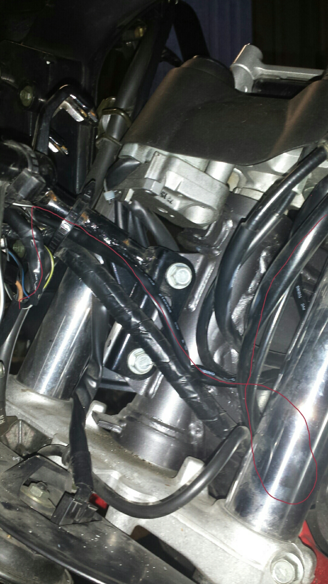 beim Einbau eines Ladekabels fürs Smartphone war es mir wichtig, dass da auch ohne Zündung Spannung ist und dass es keine Basteleien direkt an der Batterie gibt. Deshalb habe ich es an dem Hauptsicherungsteil angeschlossen; unter der Sitzbank eine Einzelsicherung dazwischengesetzt und das Kabel (mit einem Stecker aus dem Modellbau) vorne unsichtbar in der Verkleidung enden lassen. Bei Bedarf kann ich dort ein Verbindungskabel mit einer "fliegenden" Kfz-Dose + USB-Ladekabel einstecken und das Smartphone im Tankrucksack aufladen. Bei stehendem Motor besser nicht längere Zeit (1 A sind ja nicht zu vernachlässigen).