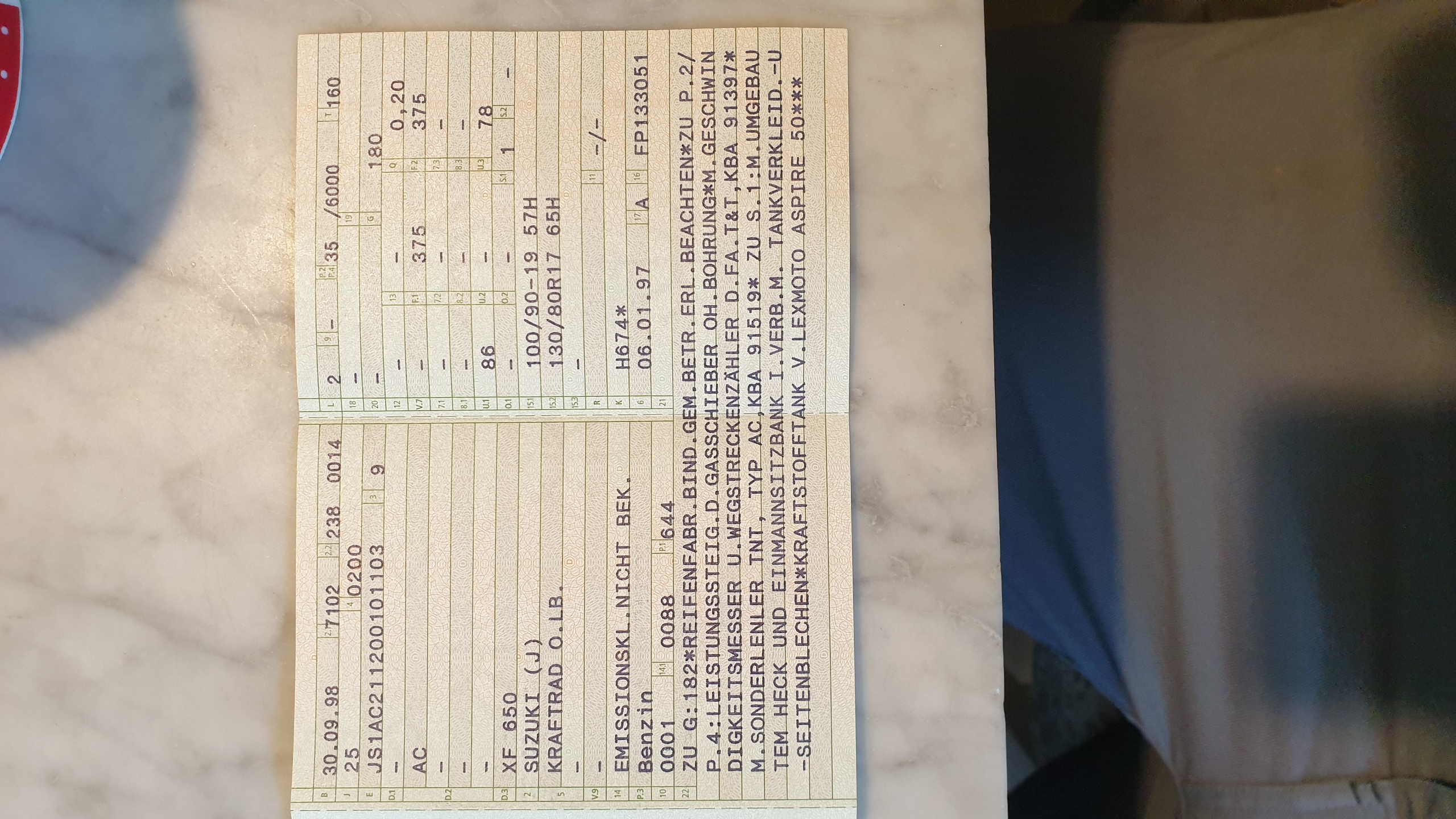 (Die bereits eingetragenen Gabelfedern sind irgendwo auf der Strecke geblieben. Ist doof aber hab ja die ABE dazu.)