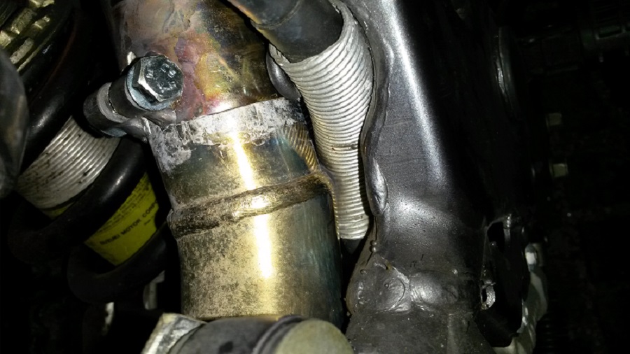 Dabei hab ich dann auch gleich noch versucht die Position des Krümmers zu ändern. Aber keine Chance, die Haltemutter fixiert den Krümmer so dass man ihn nicht in sich verdrehen kann.