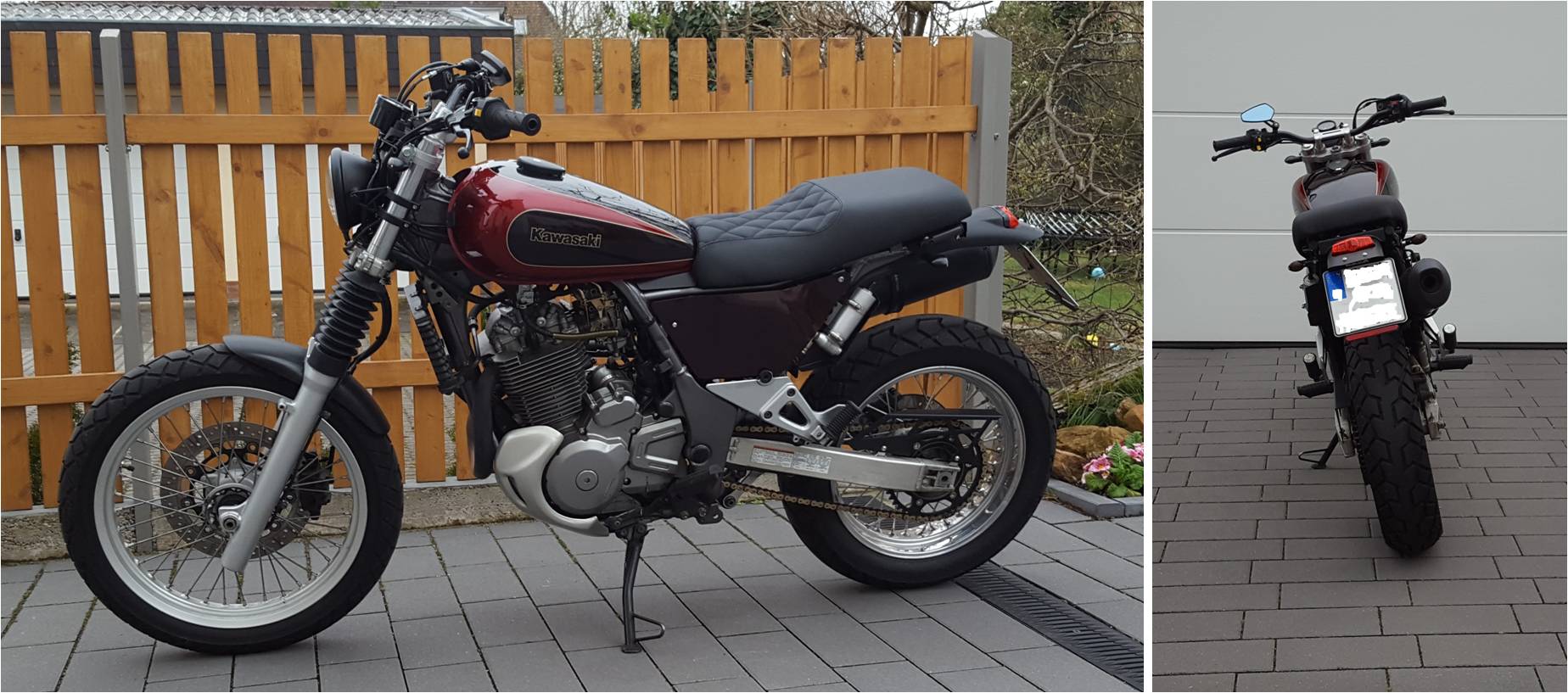 Und die Tankfrage ist jetzt auch geklärt. Ich tendiere zum Kawasaki Tank (EL 250). Der weiße Tank einer Suzuki GS 750 L bleibt mal im Fundus, da er sympathische 15 L hat.