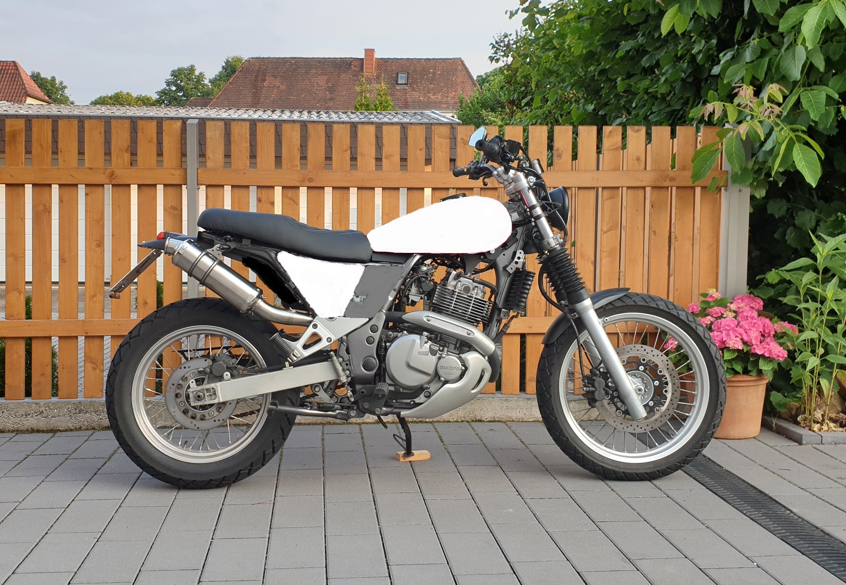 Ist trotzdem schick geworden^^ Jetzt vielleicht noch den Soziusrastenhalter und die Schwinge in Rahmenfarbe pulvern... hmmm...