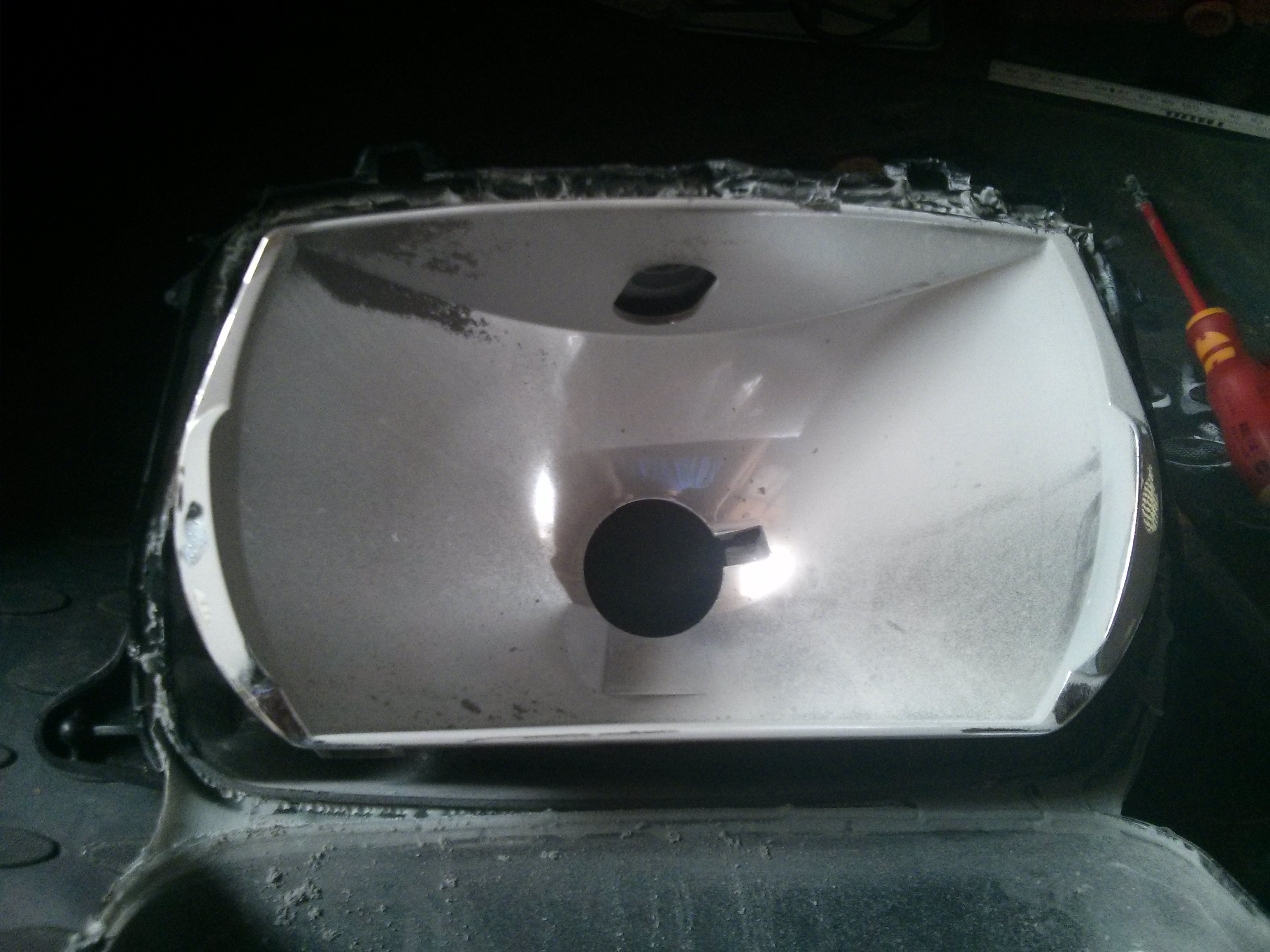 Ich habe mich am Wochenende mal an die Sanierung des Scheinwerfers begeben. Die Dichtungsmasse ließ sich nach einer halben Stunde bei 60 ° C Umluft im Backofen leicht überreden loszulassen. Nichts ist abgebrochen! Anschließend alles auseinandergenommen und gereinigt.