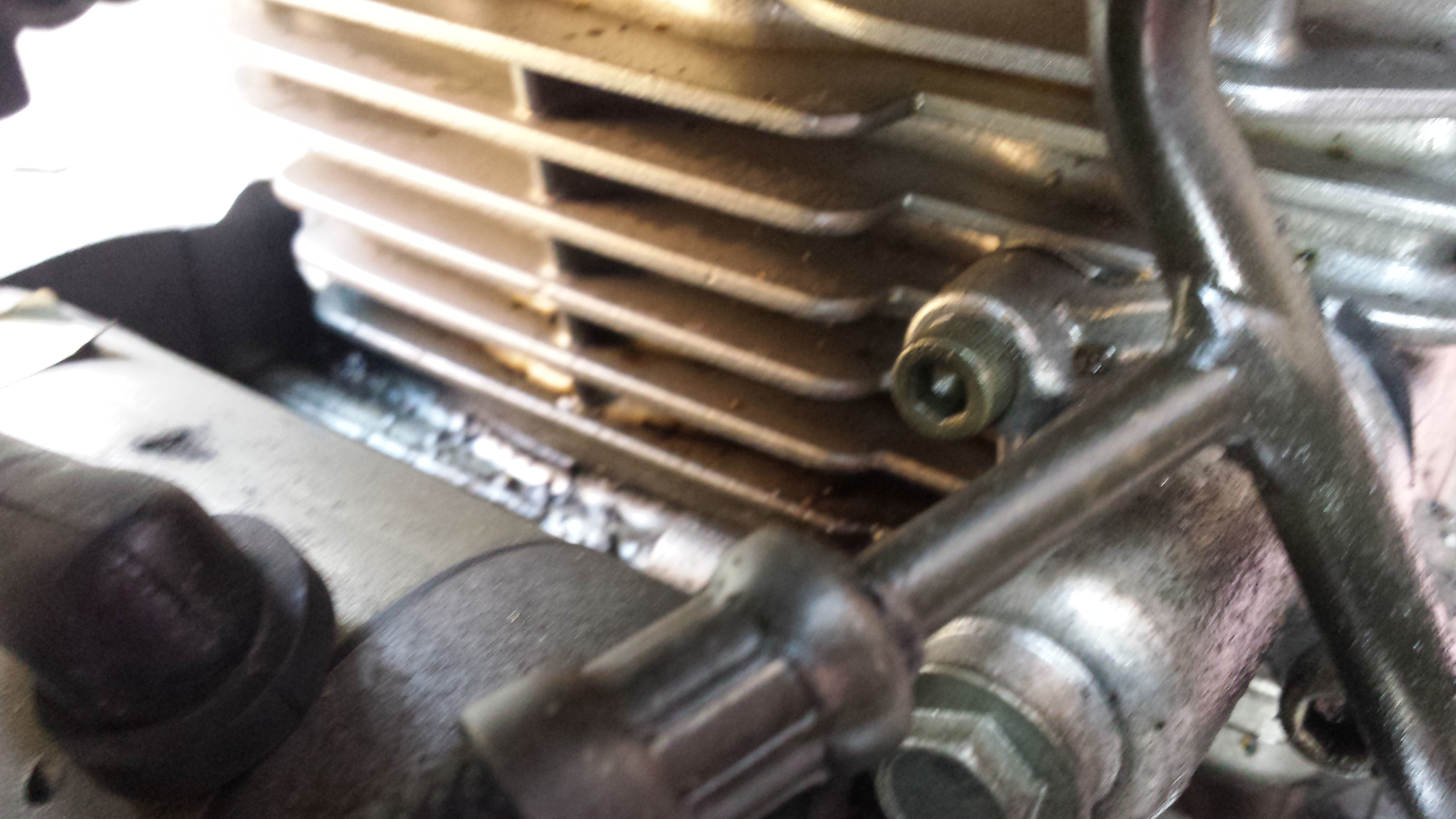 Der Zylinderkopf ist bestimmt auch nicht 100% dicht. Das Öl an der linken Seite an den Kühlrippen des Zylinders ist allerdings schon seit nem halben Jahr da und wurde auch nicht mehr. Nur unten rechts läuft es neuerdings fleißig raus. Ich hoffe immernoch auf Kettenspanner-Dichtung, die kriegt man ja gut selbst ausgetauscht.