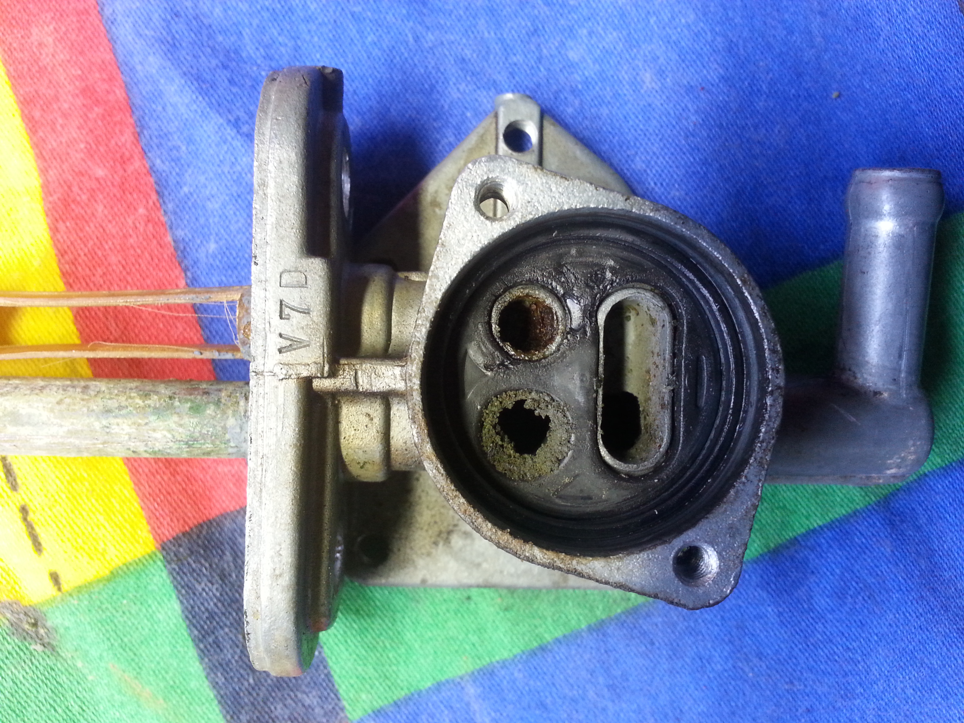 Ich meine genau die abgebildte Gummidichtung. Mit 2 Löchern und einem Langloch. Wenn die zerknautscht oder gerissen ist läuft der Sprit bei jeder Benzinhahnstellung.