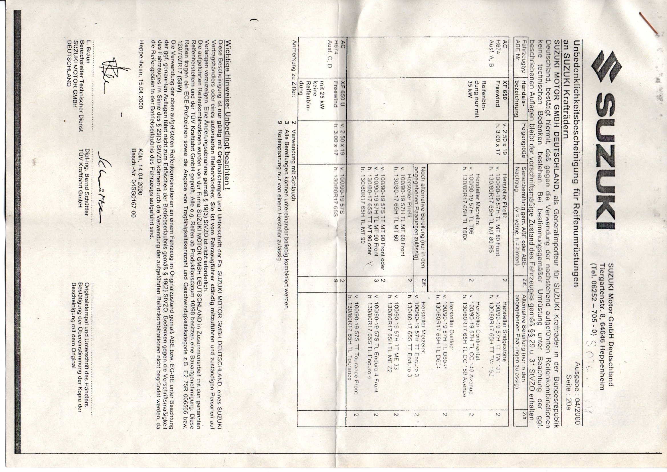 Sie hat fast neue Reifen drauf, Metzeler Tourance, die sind erstmal ganz o.k. und auch für Schotter noch zu gebrauchen