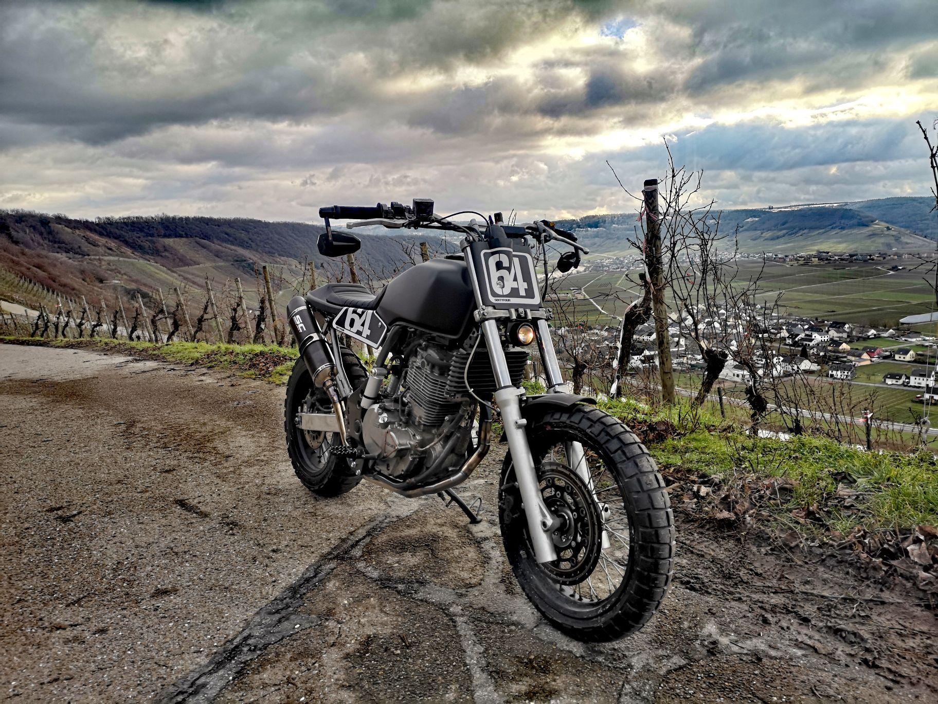 FT500 Tank, Flattrack-Heck, Eigenbau-Maske, 40er Delorto-Rundschieber mit Beschleunigerpumpe auf 1in2-Ansaugbrücke uvm., hier ist kaum ein Stein auf dem anderen geblieben.
