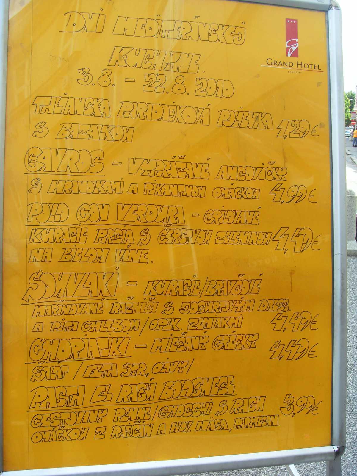 Kurz nach der Euro-Einführung waren wir 2010 in der Slowakei. Das ist ein Auszug der Speisekarte vom besten Restaurant in der Stadt Trencin. Paradiesische Verhältnisse. Ein Salat kostet 1,29 € und alle Hauptgerichte unter 5 €.