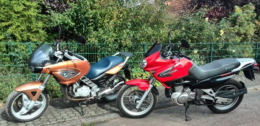 Das Fahrwerk an sich würde ich als gut bezeichnen. Doch das Federbein hinten ist schlecht, auch die Gabel kommt mir zu weich gefedert und unterdämpft vor. Doe Gabel der Freewind dämpft im Originalbetrieb besser, ist aber genauso weich. Progressive Gabelfedern und ein Wilbers hinten ist für das Frühjahr fest eingeplant.