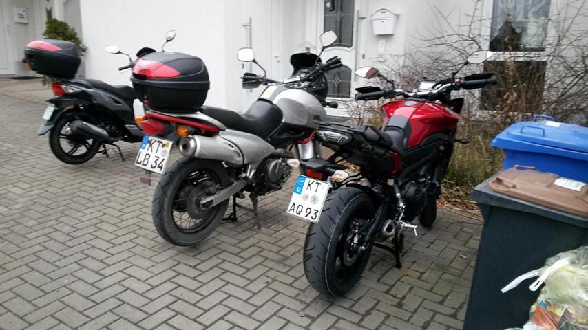 hab ja jetzt als zweitmoped 6 jahre lang die yamaha xj6 gefahren. insbesondere für lange strecken war die meiner sozia etwas unbequem, und die freewind ist auf reisen mit sozia doch leicht untermotorisiert. gestern hab ich also, nach einer ausgiebigen probefahrt, meine xj6 mit 77000km beim händler in zahlung gegeben und mir diese MT-09 Tracer geholt. die sitzposition ist mit der auf der freewind nahezu identisch, aber sie hat halt 115 ps, 88 Nm und praktisch ab Leerlaufdrehzahl druck. wind- und wetterschutz ist auch nicht schlecht, jedenfalls besser als auf der freewind und der xj6.