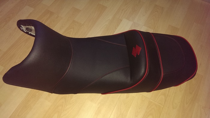 Auf/Ab/Umpolstern in drei verschiedenen Härtegraden (härter,serie,weicher) für Fahrer und Sozius getrennt wählbar, Sitz verbreitern (max.2cm), und Position der "Lendenwirbelstütze" wählbar , alle Nähte Wasserdicht versiegelt (Teilweise mit Aufpreis verbunden)