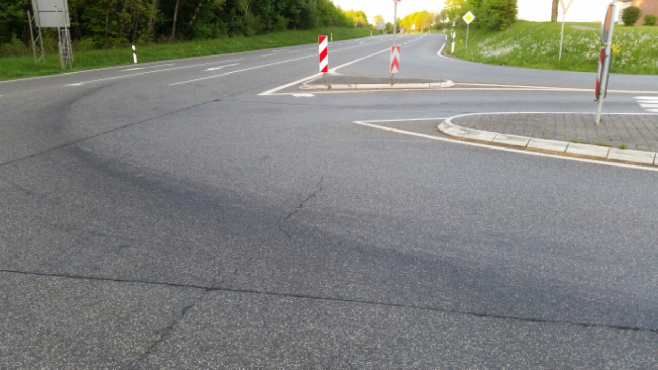 Einen Verantwortlichen an dieser Stelle zu finden ist unmöglich. Die Stelle liegt an einer großen Landstraße als Zufahrt zu einem Industrie- und Gewerbegebiet und ist nicht frisch. Vermutlich haben da schon mehrfach Landmaschinen und schlecht gewartete Laster was verloren.