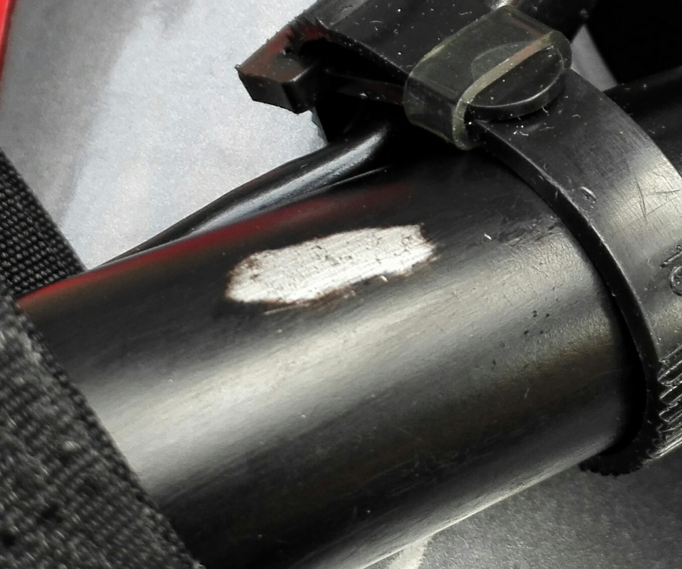 da bleibt ja nur die Lösung, die schadhafte Stelle mit matt-schwarzer Farbe und nem Pinselchen auszubessern damit das blanke Metall überdeckt ist.