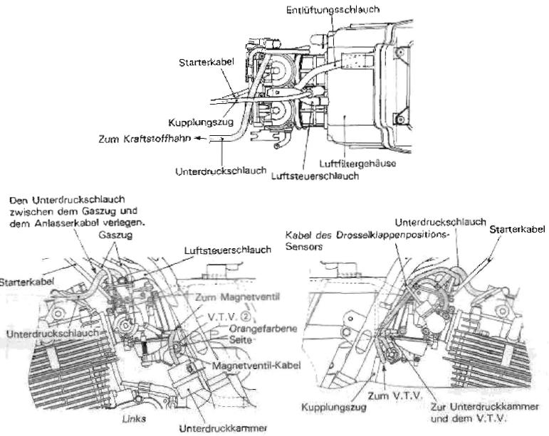 2. Auf den Bildern oben, wo die Schläuche bezeichnet sind, gibt es den Luftsteuerschlauch. Dieser Schlauch, also der Obere, zwischen den Vergaserdeckeln war bei mir ab. Die ganze letzte Saison schon, sie lief bis auf das Problem mit dem Leerlauf sehr gut. Wofür ist der Luftsteuerschlauch gut, oder hat er nur eine Funktion für das Schlauchgedöns? Das ist bei mir weg. Oder liegt vielleicht mein Problem eins an dem Schlauch?