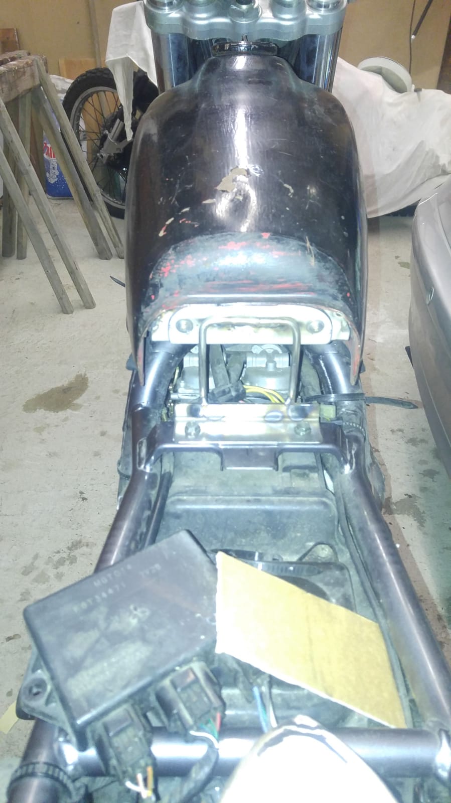Ich habe Bilder gemacht von der Befestigung und von dem Bereich wo ich mit dem Kugelhammer den Tanktunnel eingebeult habe.