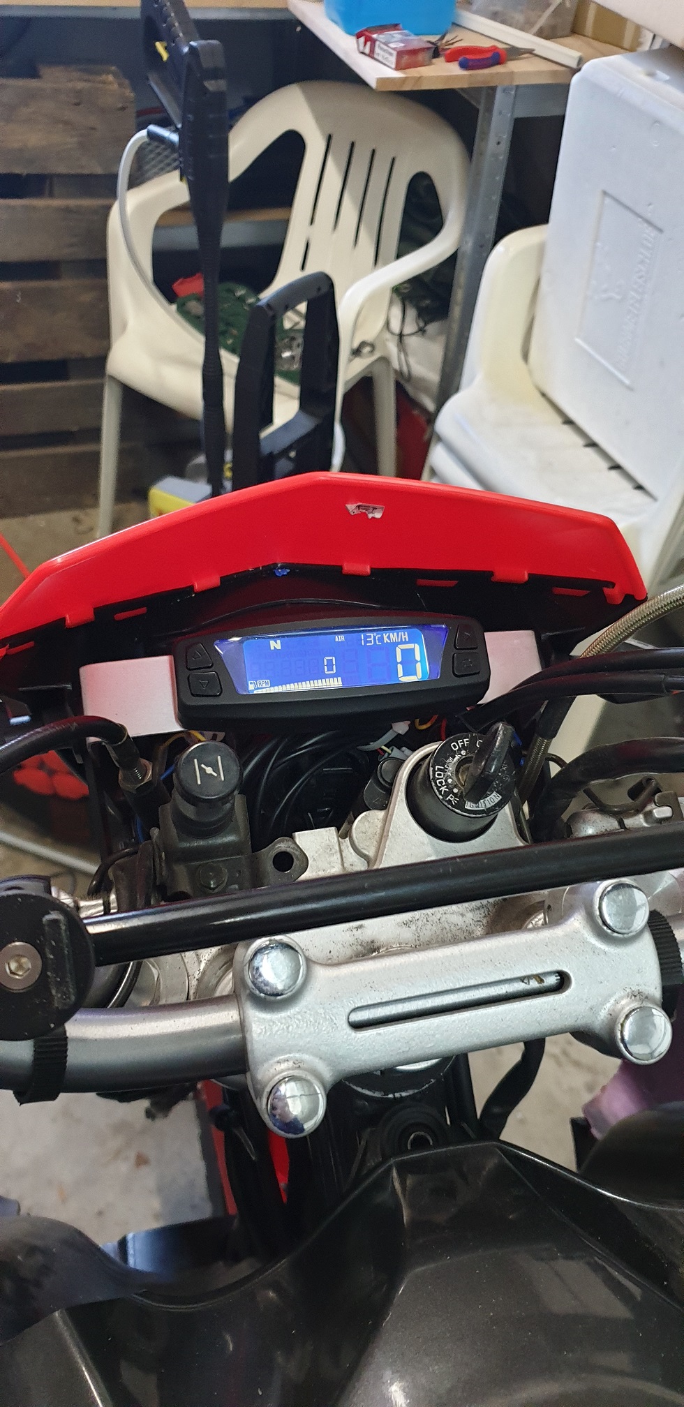Habe gerade die erste Testrunde gemacht um den Tacho auf Funktion zu testen und zu schauen wie der Motor läuft. Tachoanzeigen soweit alle korrekt (Drezahl, Blinker, Neutral) Leider springt die KMH anzeige total und zeigt unsinnige Werte. Außerdem ist der Vergaser noch nicht richtig eingestellt. Die Leistung ist zu gering und Vmax 110. Im Schiebebetrieb knallt sie auch total. Ich denke mal der Motor ist zu fett eingestellt?