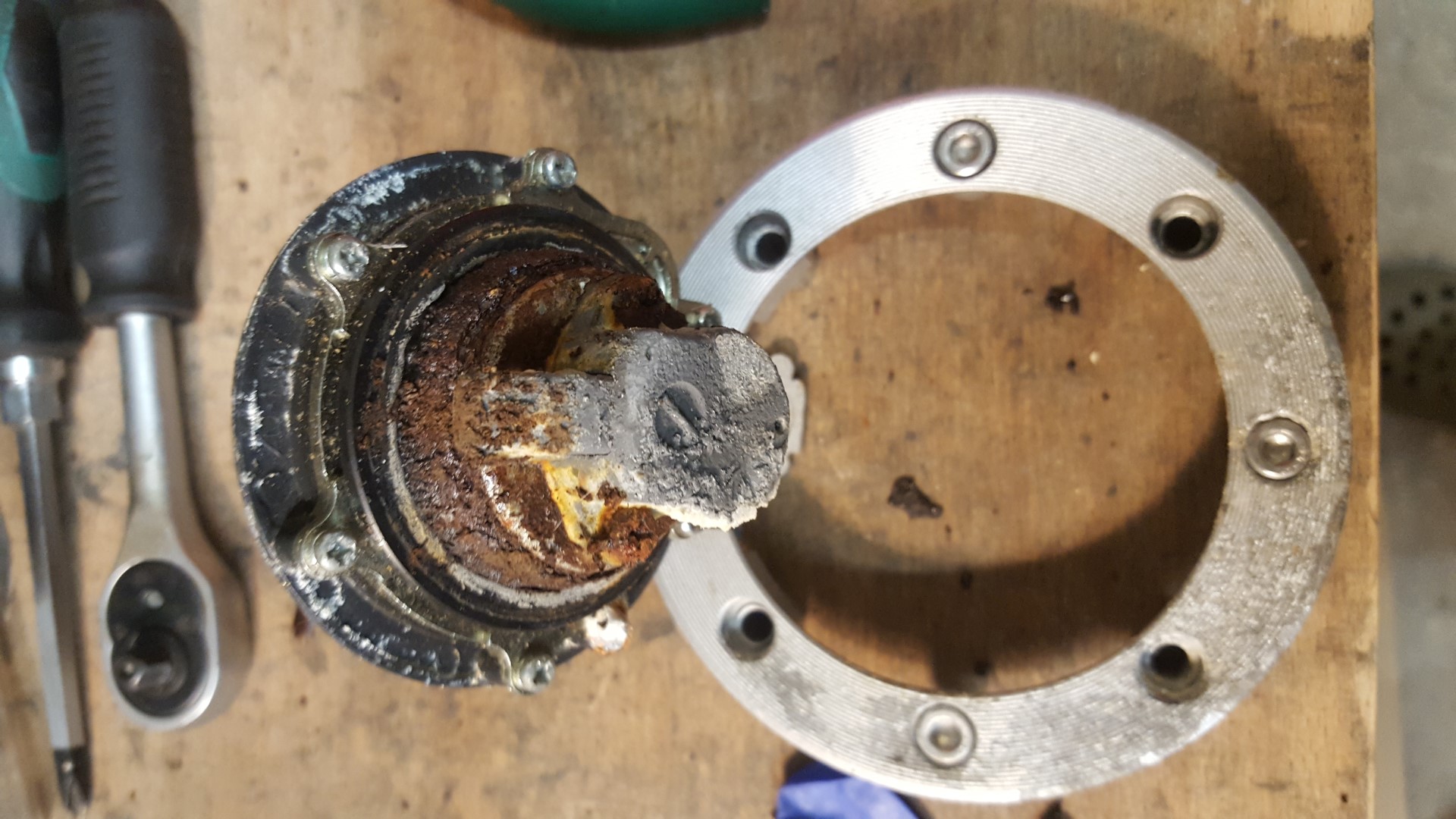 Da der Tankdeckel sowie sämtliche Mechanik darin hinüber sind hatte ich auch nix zu verlieren. Vorsicht ist auf jeden Fall geboten da dort gefühlt 20 mini Federn drinstecken. Wenn man jedoch behutsam vorgeht sollte das ziemlich fix zu machen sein.