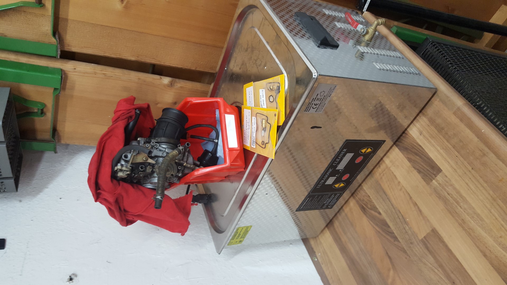 Ich fühlte mich mit 2 Servicekits und einem Ultraschallgerät auf der sicheren Seite, selbst wenn mir die Erfahrung mit Vergasern fehlt. Ich dachte mir, das könne nicht viel schlimmer sein als ein Dämpferservice im MTB Bereich.