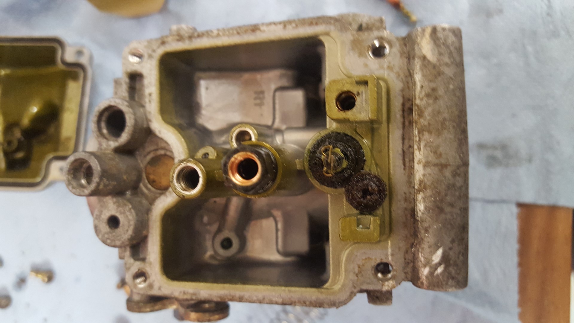 Um einen Eindruck des Zustandes zu bekommen habe ich die Schwimmerkammer des zweiten Vergaser geöffnet und Bilder gemacht.