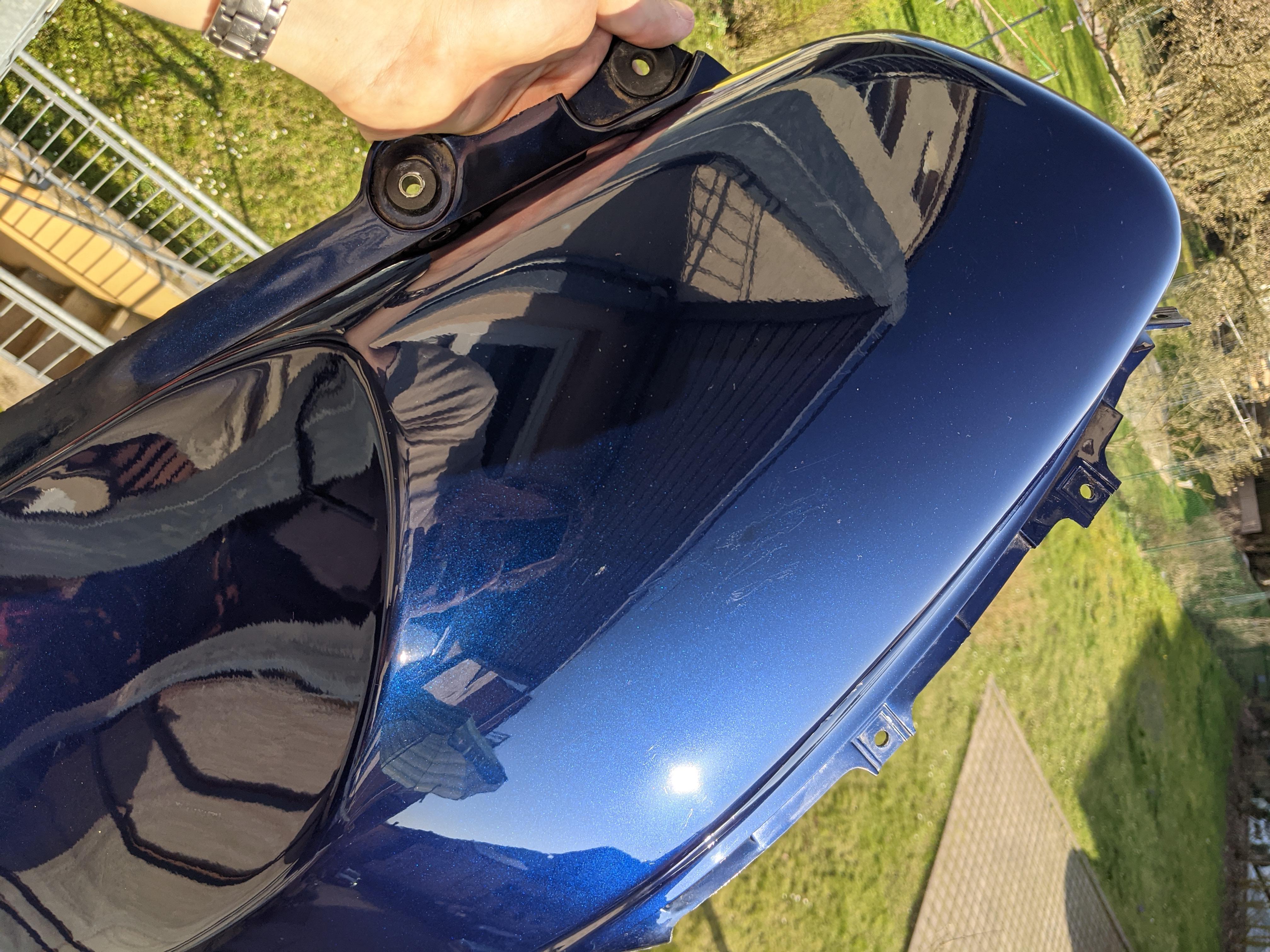 Man sieht deutlich den guten geschützten Lack und den Aufklebern. Anschließend habe ich mir Politur "Manzerna 1000 und 2000" und Polierpads besorgt und das ganze nochmal ordentlich bearbeitet. Das Ergebnis kann sich sehen lassen: