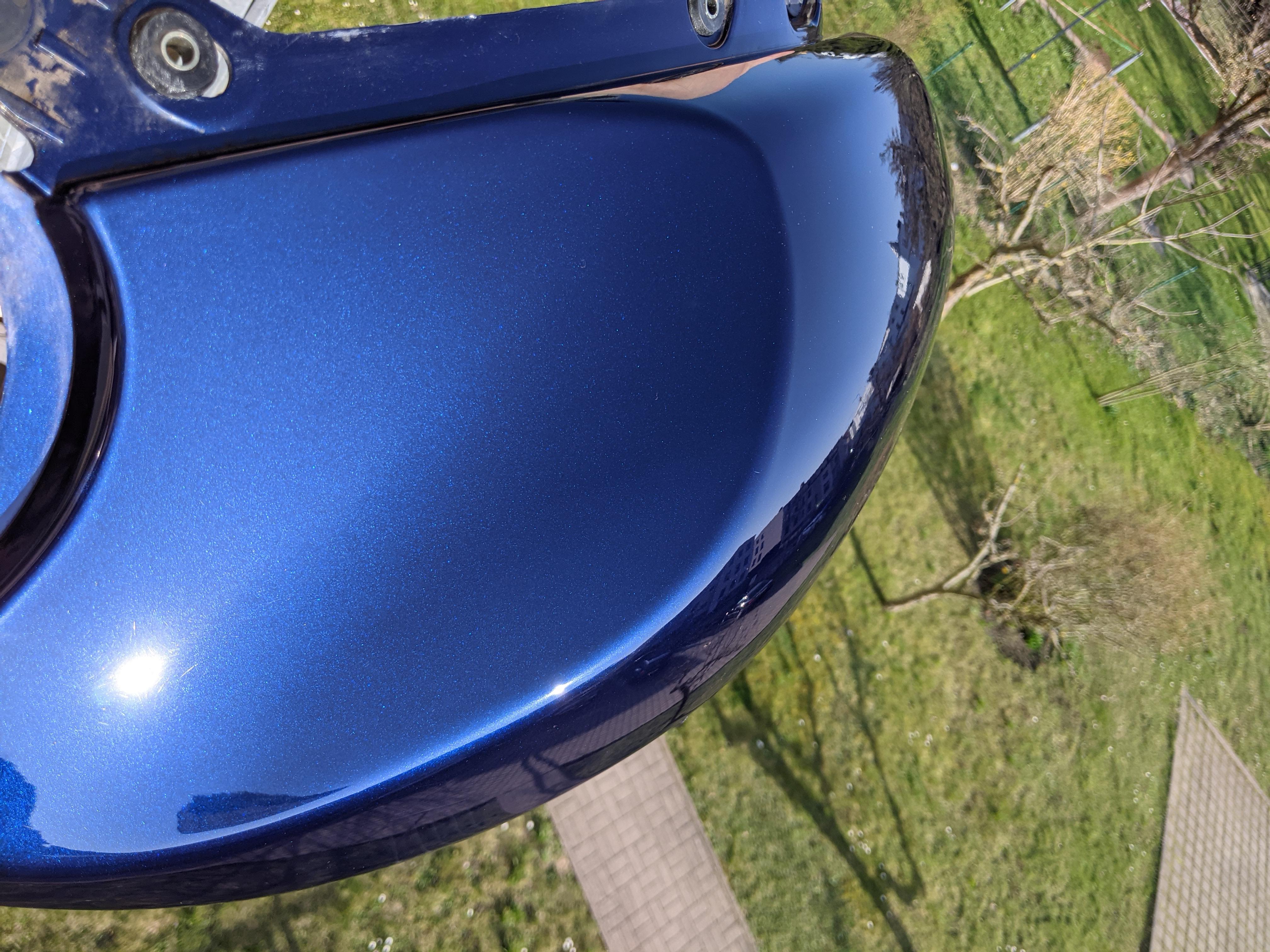 Man sieht deutlich den guten geschützten Lack und den Aufklebern. Anschließend habe ich mir Politur "Manzerna 1000 und 2000" und Polierpads besorgt und das ganze nochmal ordentlich bearbeitet. Das Ergebnis kann sich sehen lassen: