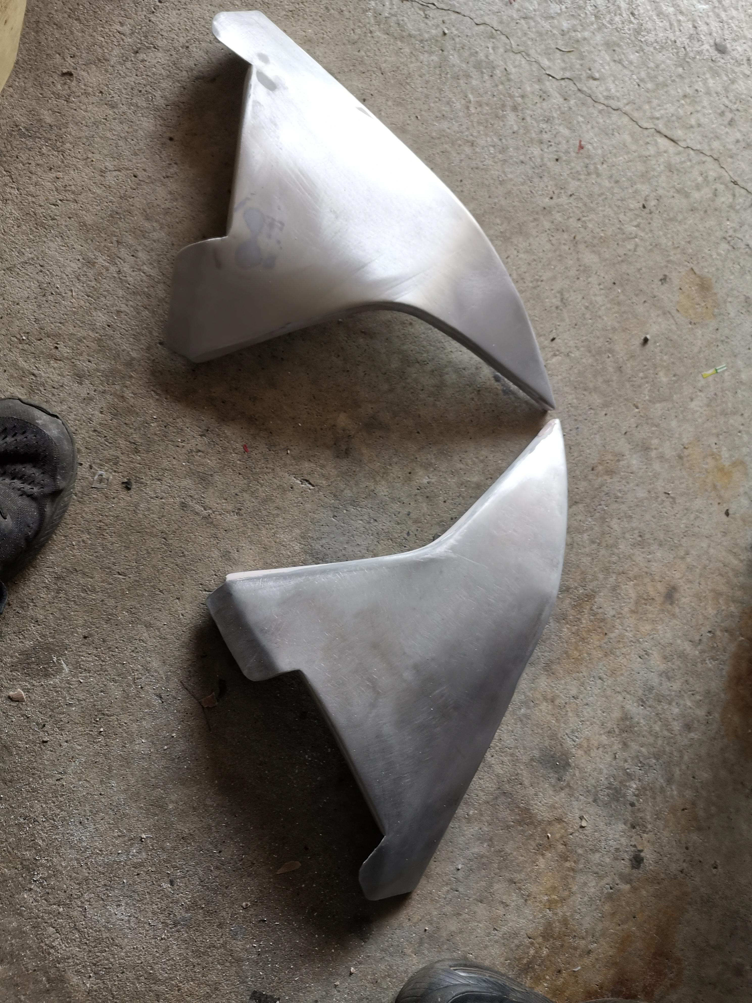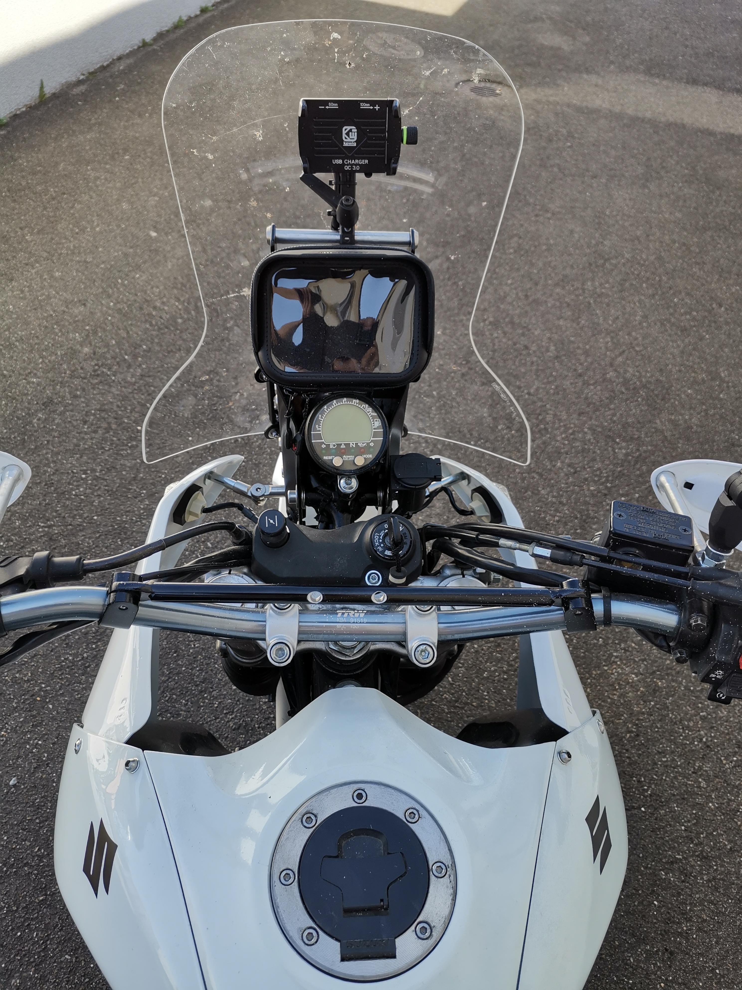 Seitenverkleidungen vorne aus Alu gedengelt und ne NC750X Scheibe von Givi drann, und zum testen noch ne Originale NC750X Scheibe, geht ganz gut bis jetzt, ist noch ausbaufähig